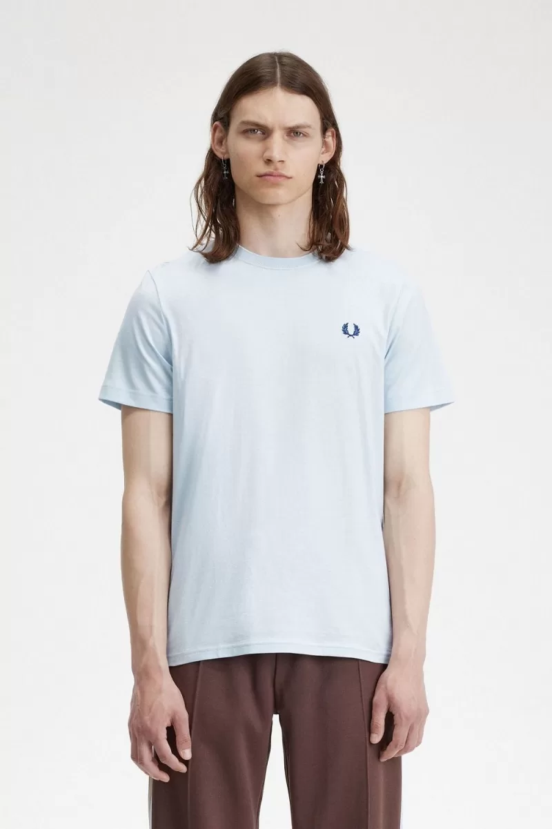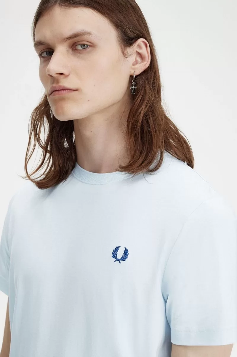 Fred Perry Crew Neck Men’s T-Shirt Light Aqua Midnight Blue | YEJRU8413