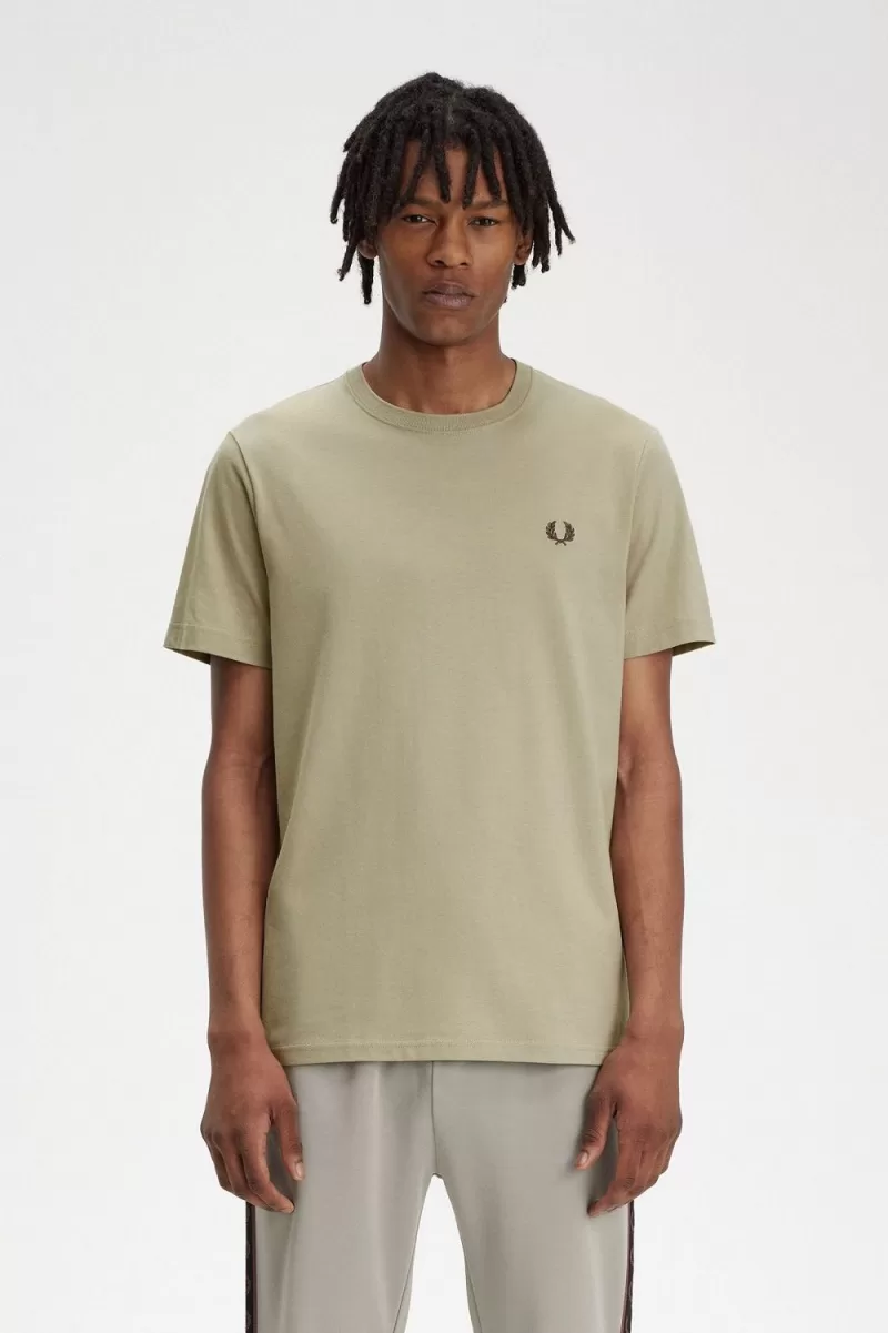 Fred Perry Crew Neck Men’s T-Shirt Warm Grey Dark Red | ELFZO7239
