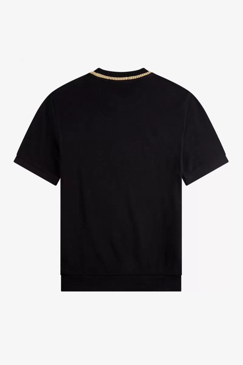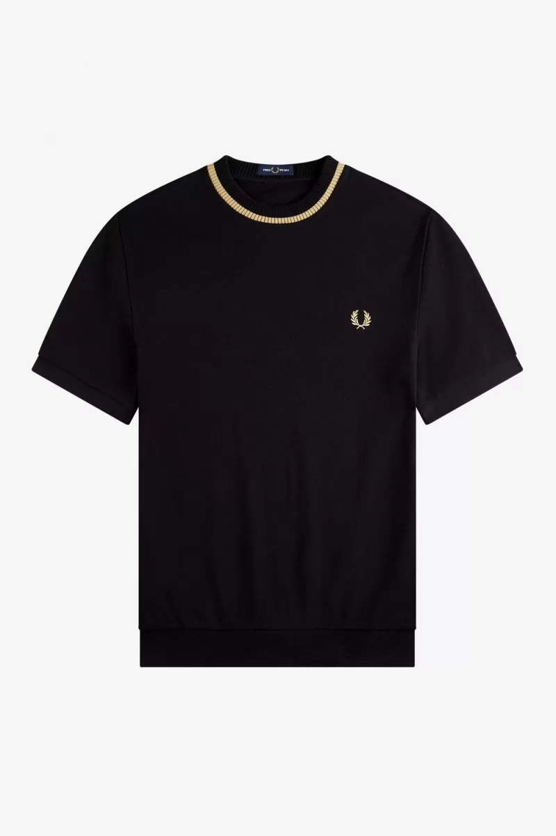 Made in Portugal / Refined cotton piqué / High crew neck / Chunky ribbed hem and neck / Single tipping