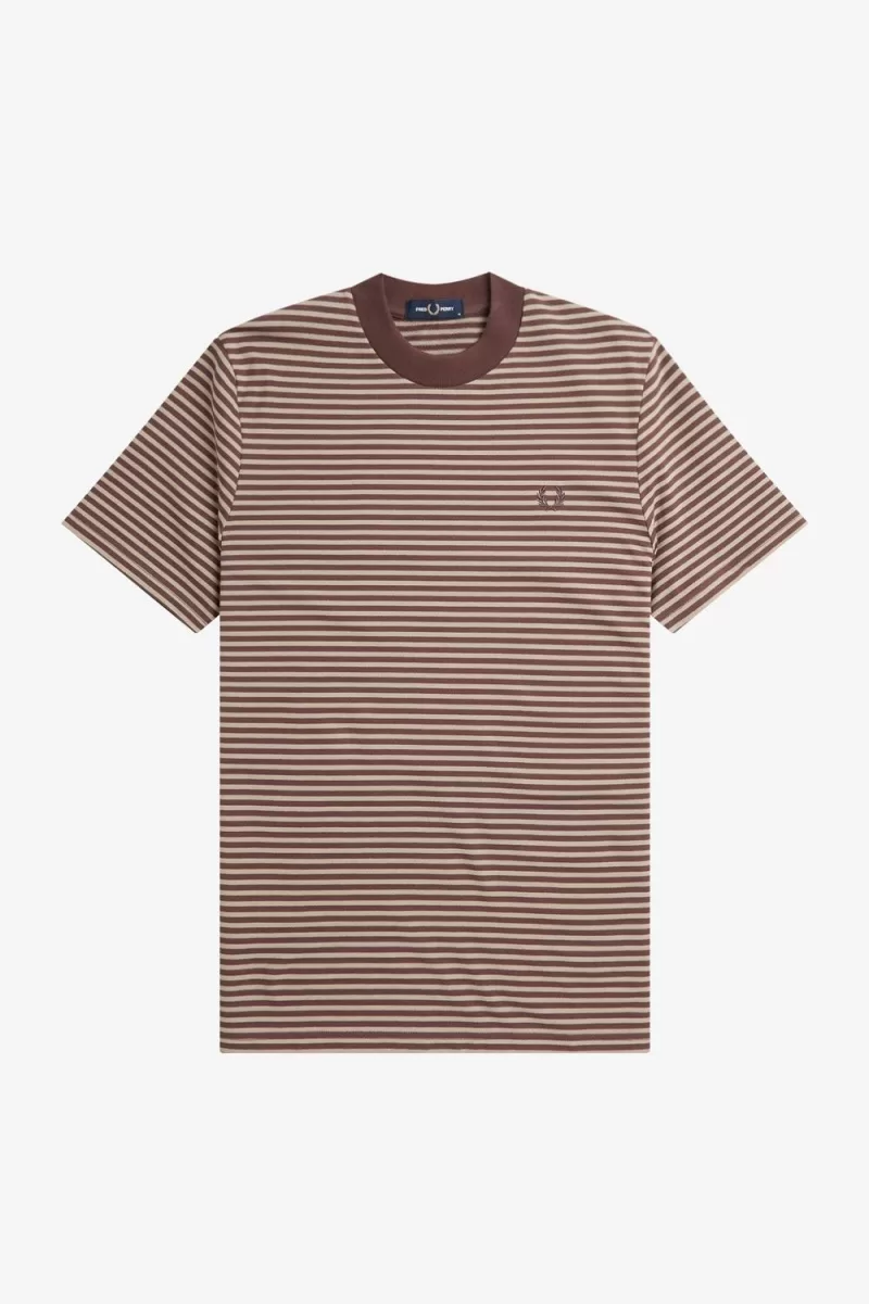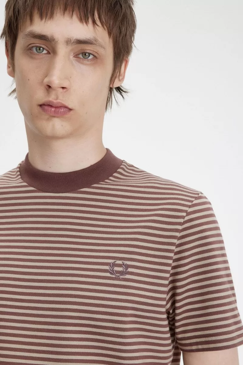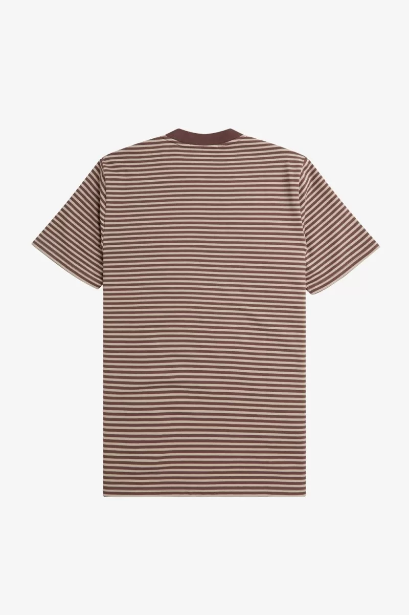 Fred Perry Fine Stripe Heavyweight Men’s T-Shirt Dark Red Warm Grey | WLMOX2489