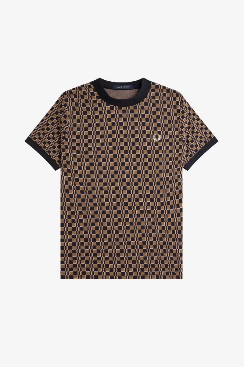 Home Fred Perry Men Fred Perry Men Clothing Fred Perry Men Clothing T-Shirt Fred Perry Glitch Chequerboard Men’s T-Shirt Brown Navy | XSKQD5630