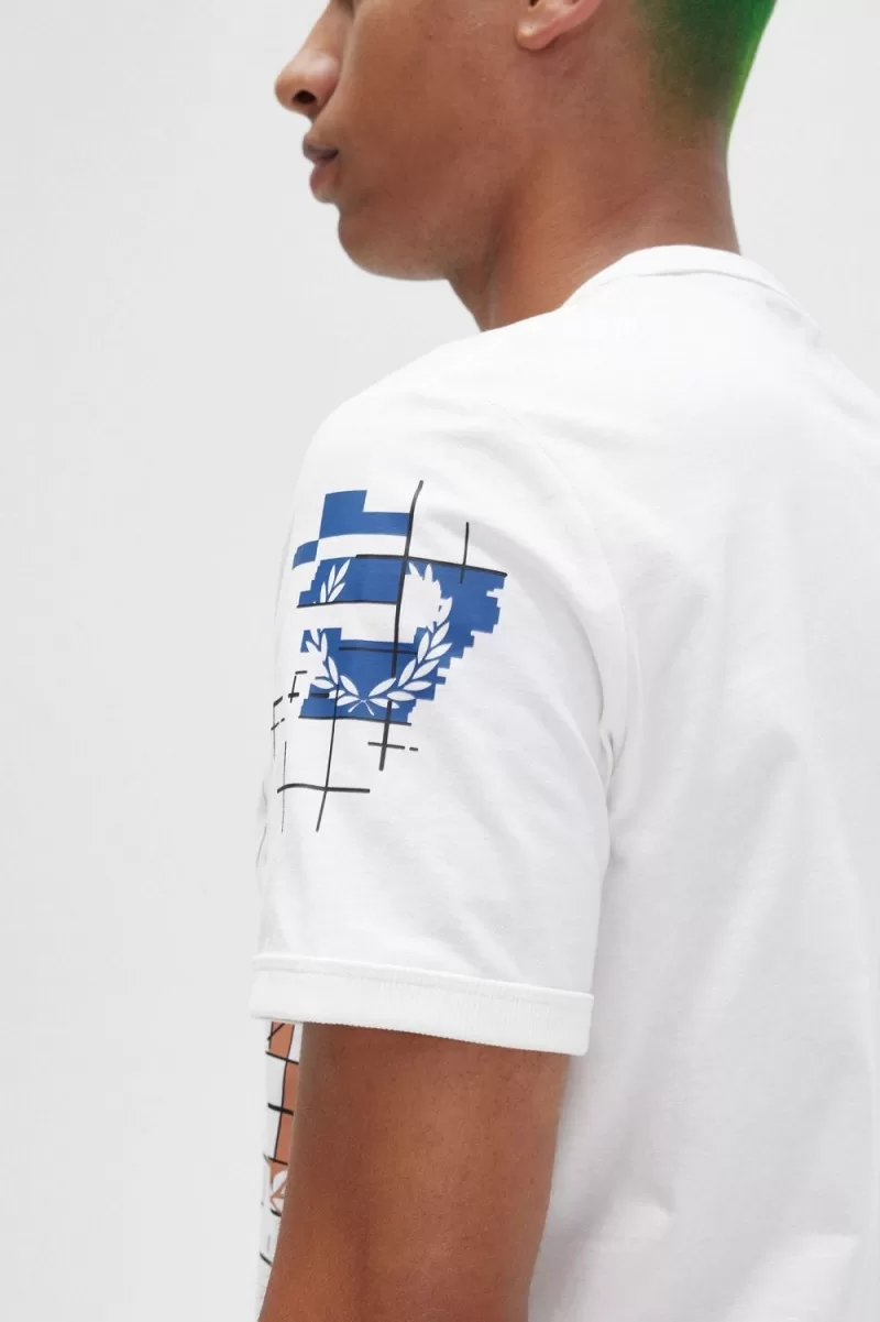 Inspired by designs from our archive, our Reissues collection reinterprets original pieces with directional styling.The graphic t-shirt comes from humble origins, but its relevance stretches back decades. Our grid print t-shirt references the screens and soundwaves of the ‘90s rave and techno scenes, when printed graphics were bolder and brighter than ever – a sign of the times as multi-coloured sportswear started to rebel against the strict whites of Wimbledon.