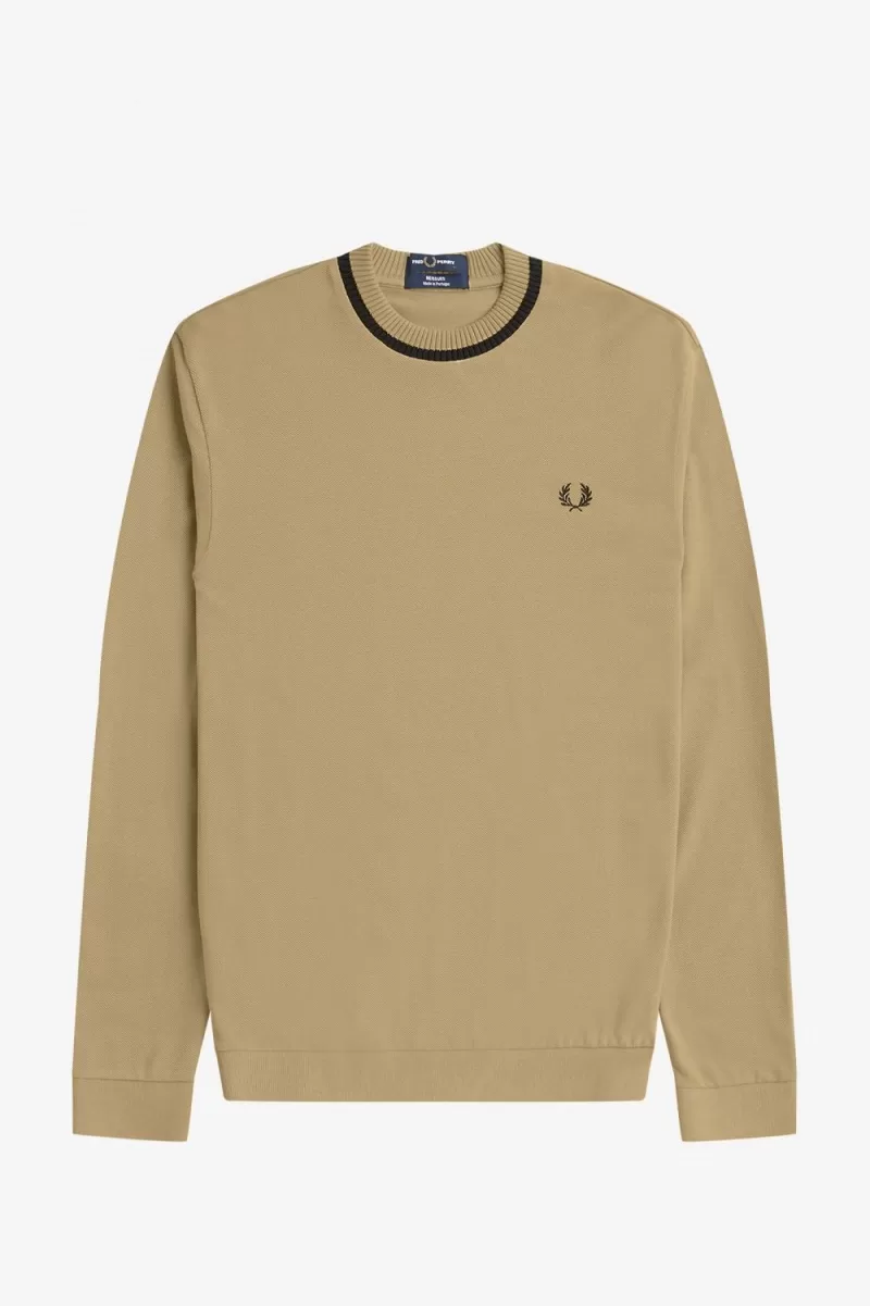 Inspired by designs from our archive, our Reissues collection reinterprets original pieces with directional styling. Taking design cues from luxe ‘50s leisurewear that bridged life on and off the court, our long sleeve crew neck t-shirt is crafted from a mesh textured cotton piqué and is reminiscent of a design Fred would have worn at the Beverly Hills Tennis Club. A real Fred Perry head turner.
