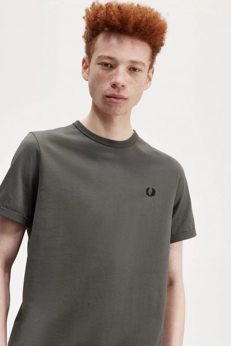 Fred Perry Ringer Men’s T-Shirt Field Green | IHMKB0123