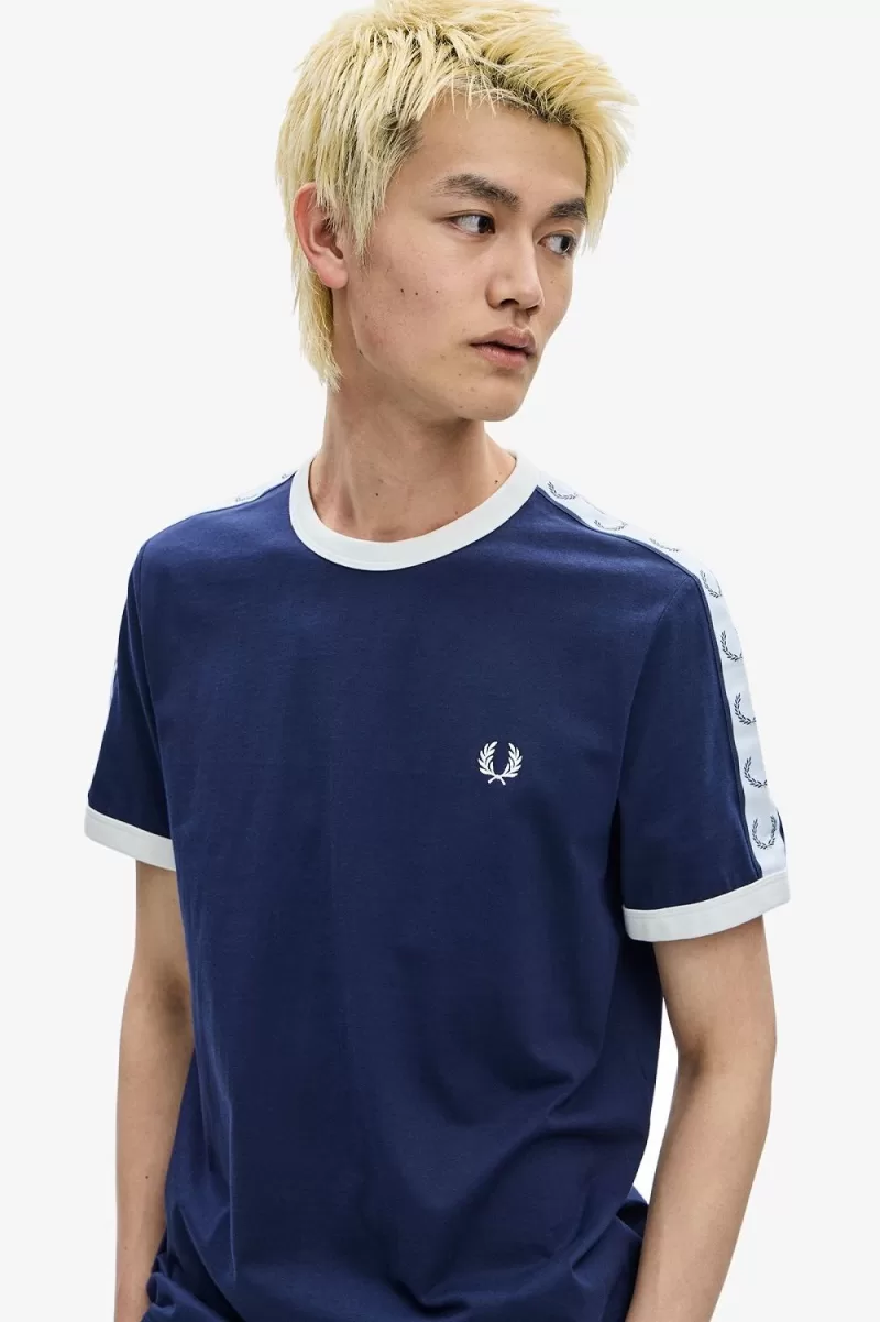 Defined by its contrast rib neck and cuff, our ringer t-shirt is trimmed with our original Laurel Wreath track tape at the sleeve.