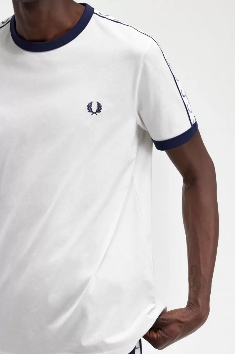 Fred Perry Taped Ringer Men’s T-Shirt Snow White | FZGED0413