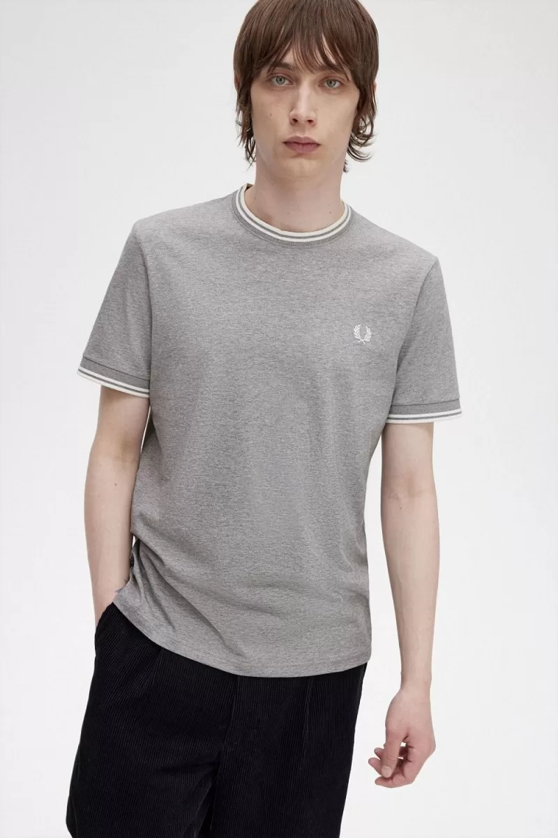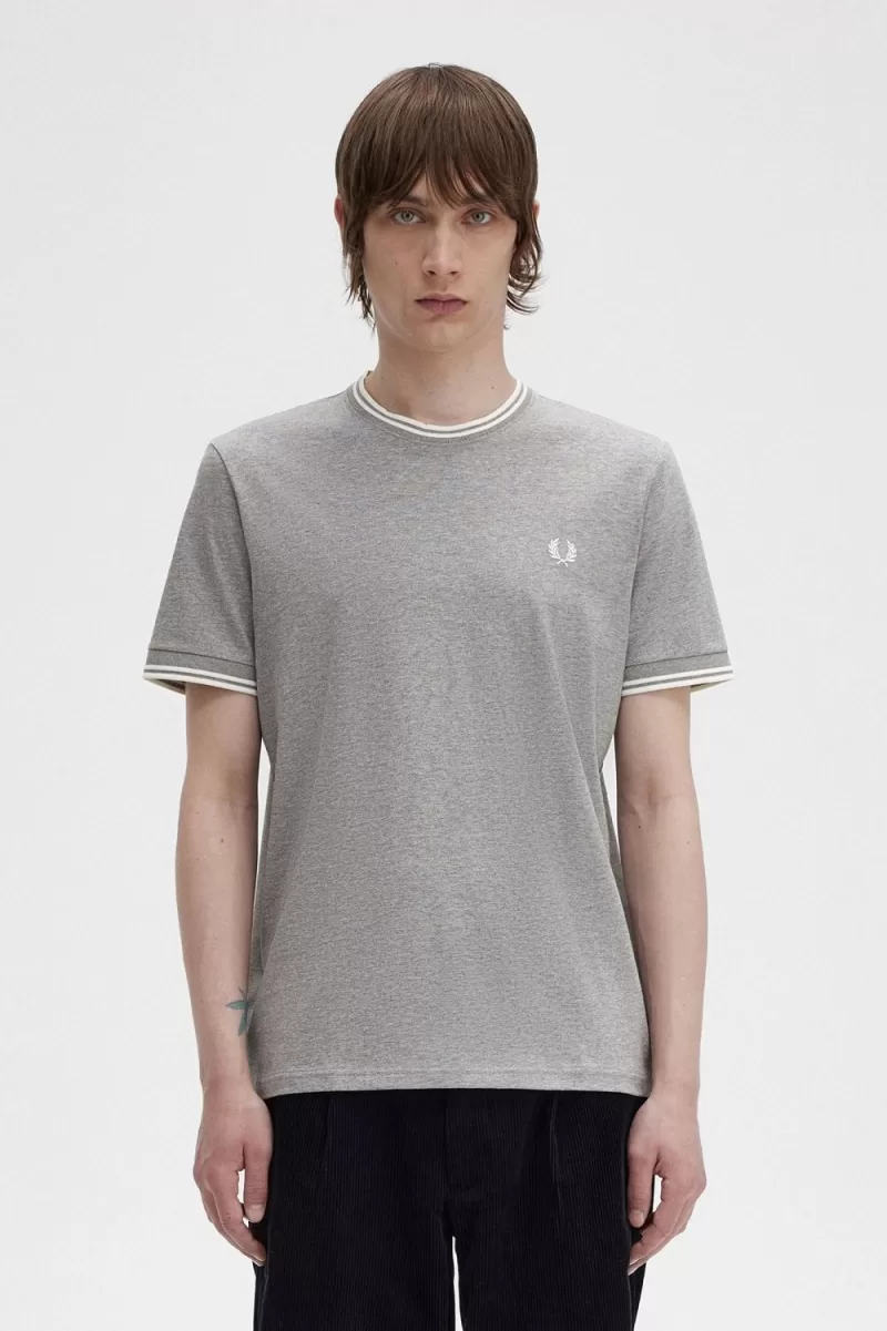 Legend has it, our twin tipping came about when a buyer from Lillywhites requested the addition of football team colours to Fred’s plain-colour tennis shirt. Only we use tipping in the ratio 5-4-4 and it’s a part of our DNA. Designed with our signature detailing, our crew neck T-shirt features twin tipping and colour-matched Laurel Wreath embroidery. Very very Fred Perry.