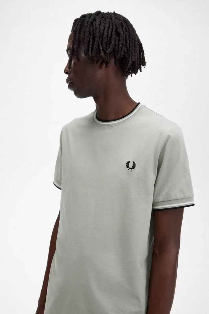 Legend has it, our twin tipping came about when a buyer from Lillywhites requested the addition of football team colours to Fred’s plain-colour tennis shirt. Only we use tipping in the ratio 5-4-4 and it’s a part of our DNA. Designed with our signature detailing, our crew neck T-shirt features twin tipping and colour-matched Laurel Wreath embroidery. Very very Fred Perry.
