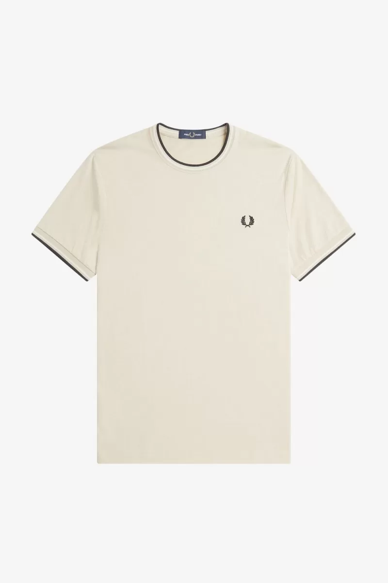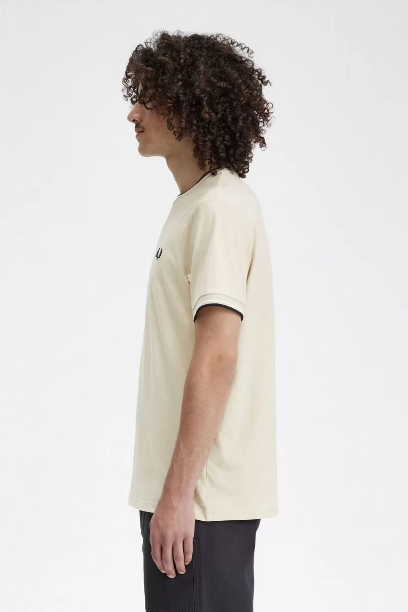 Fred Perry Twin Tipped Men’s T-Shirt Oatmeal Beige Black | GCDOB7621