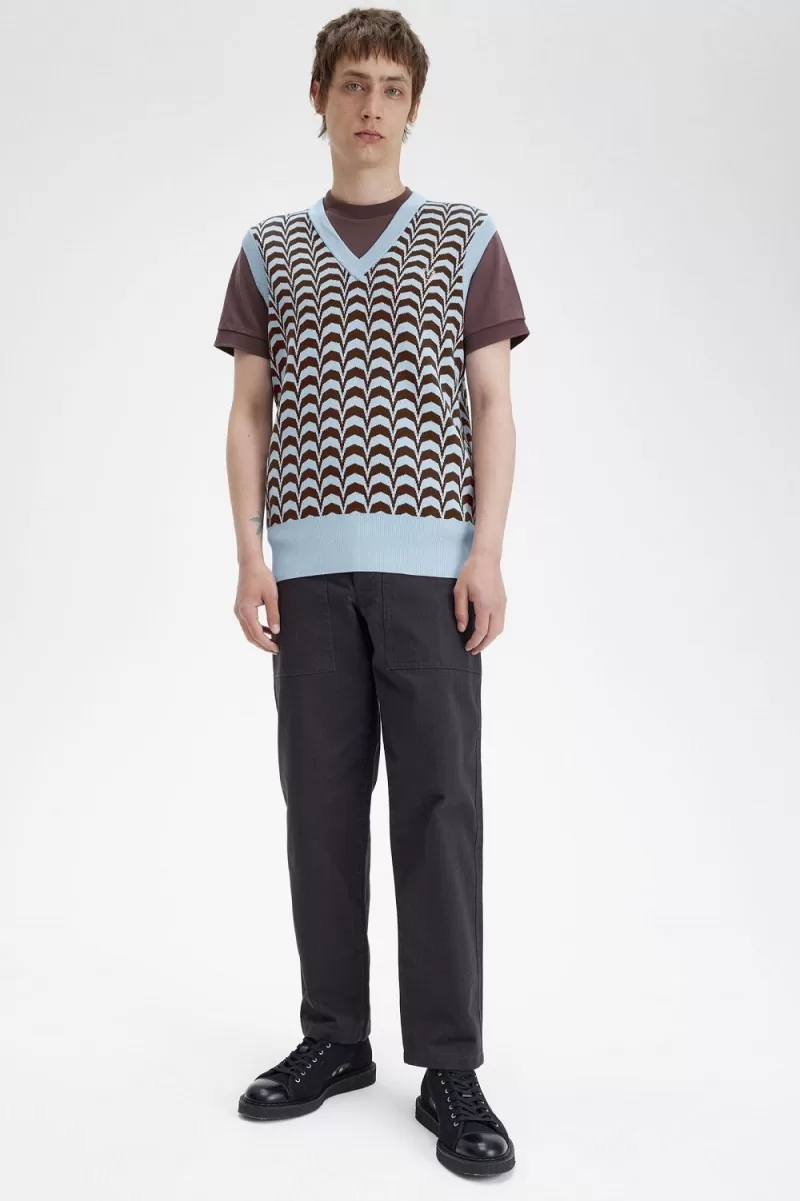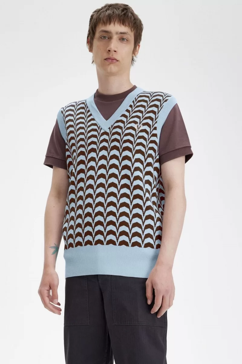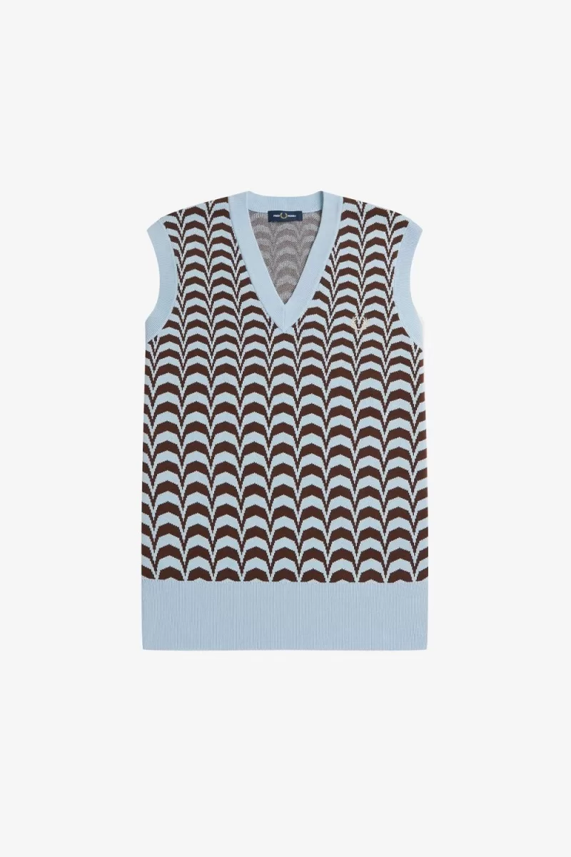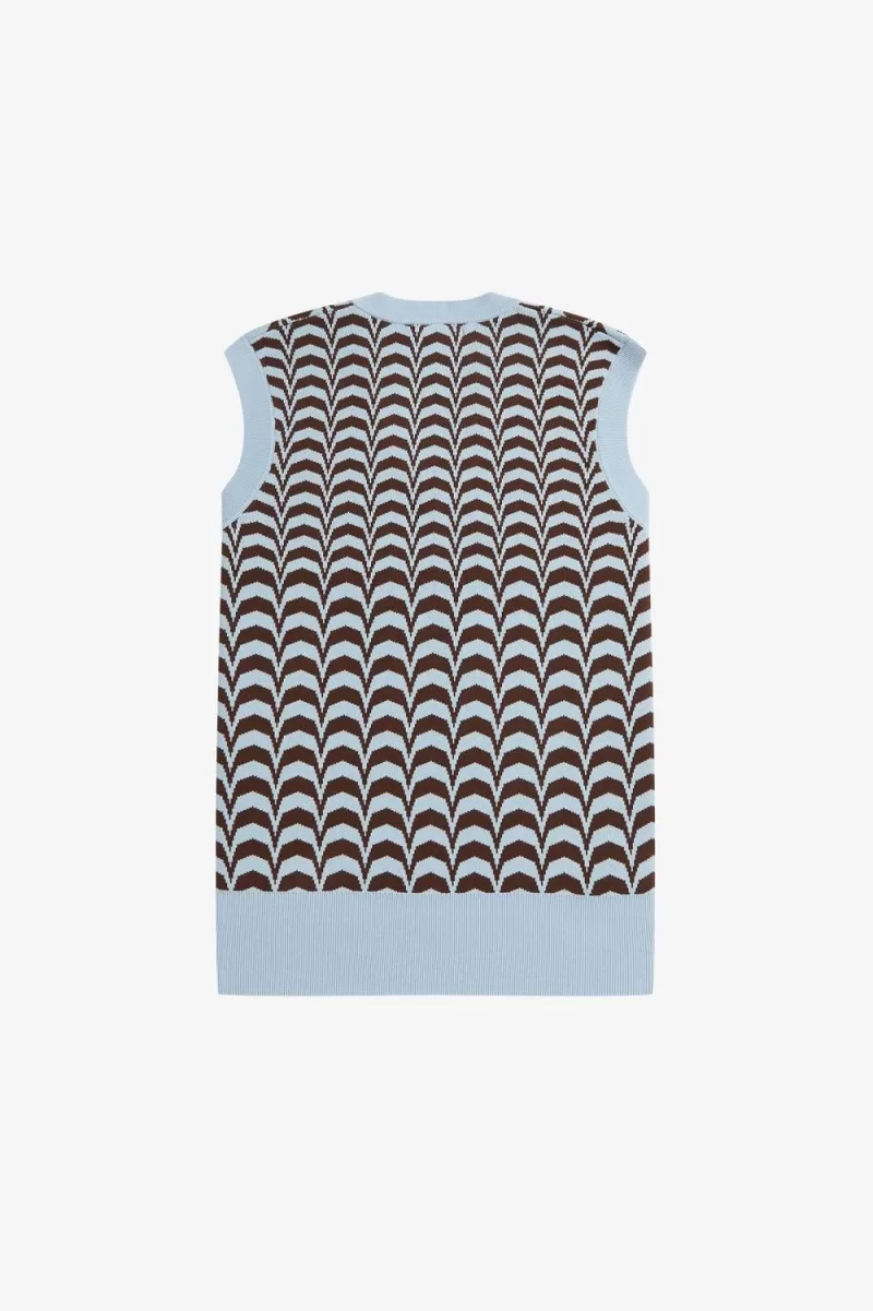 Chevron is a historic textile favourite – once associated with military insignias, later spotted on catwalks, in 1960s interior design, and in the Fred Perry archive. Its hypnotic repetition makes it a shoe-in for club and rave wear. Our jacquard tank is elevated enough for your most important nights out, but still keeps you warm in a pure cotton knit.