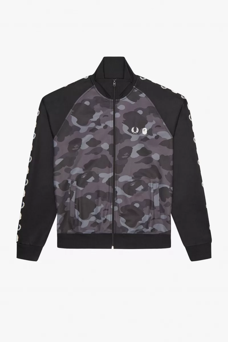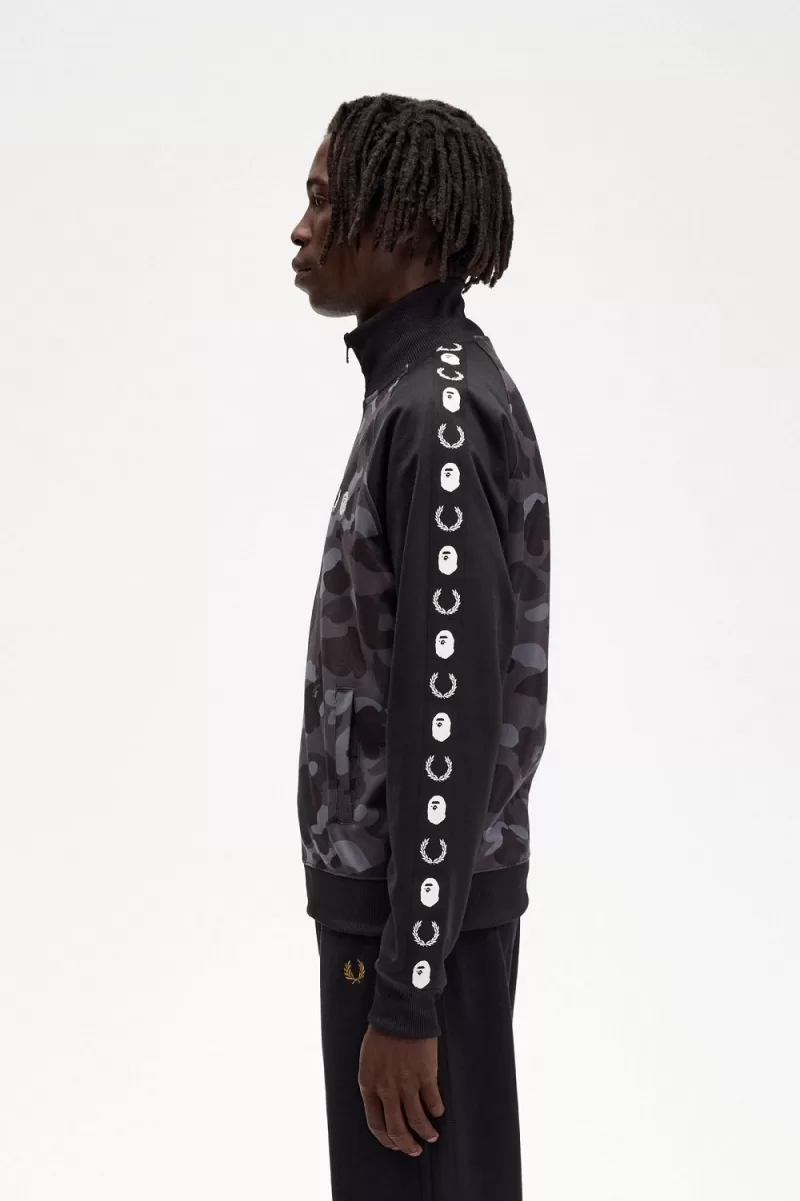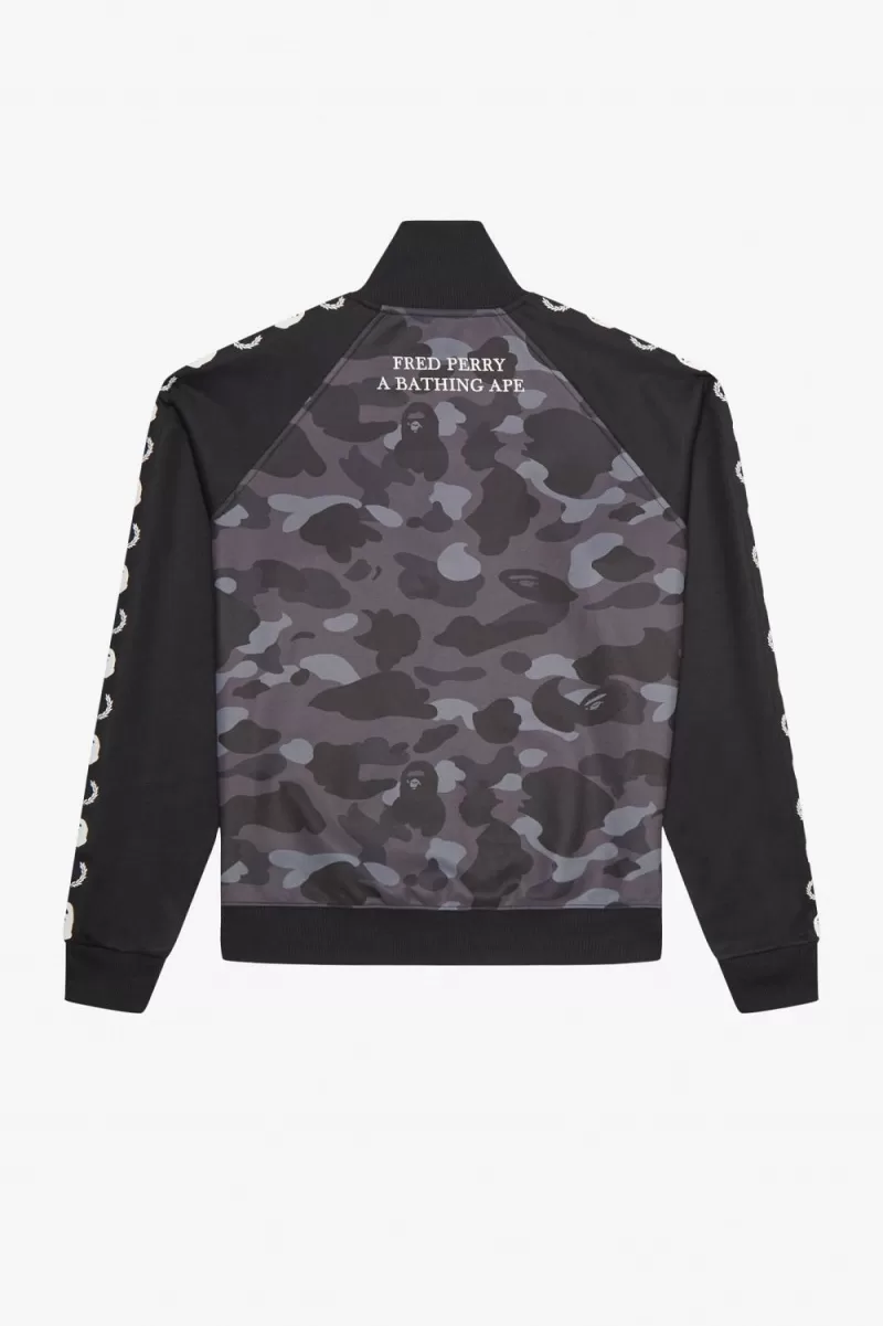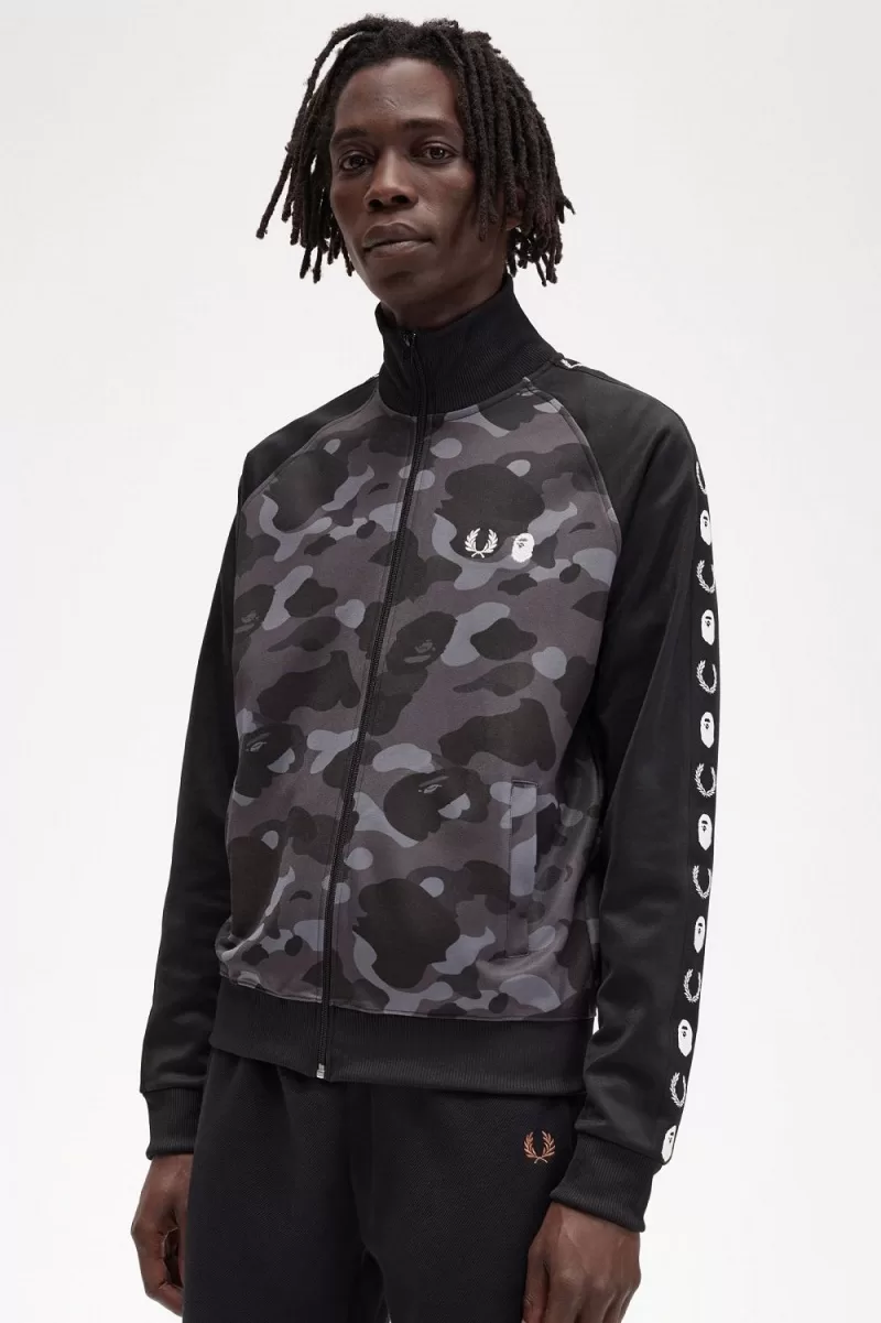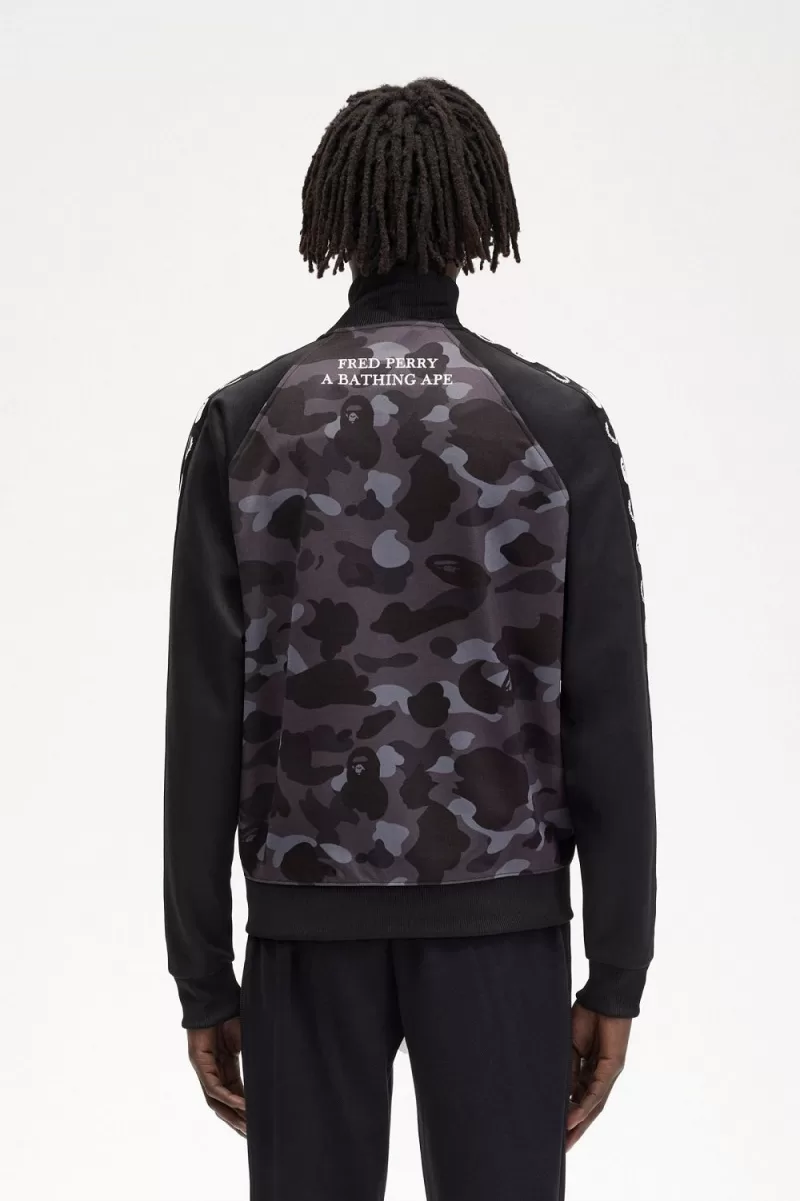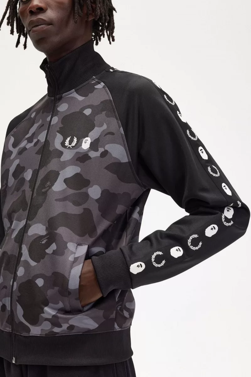 Japanese streetwear brand A Bathing Ape® put their stamp on our Taped Track Jacket with signature camouflage panels and dual branded track tape at the sleeves.
