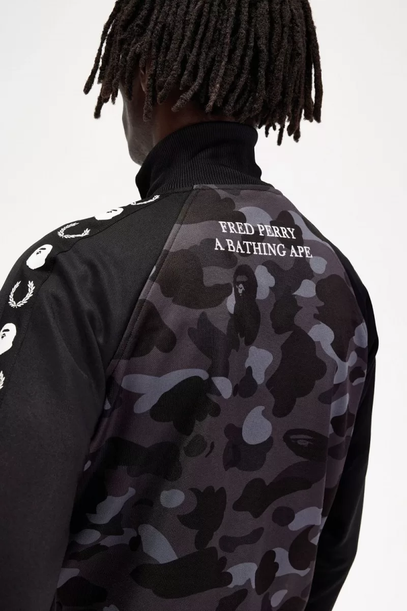 A Bathing Ape® was founded in 1993 when its founder began selling branded T-shirts and camouflage sweats out of a small shop in Shibuya, Tokyo. With shop locations now all over the globe, their brand DNA remains the same, and our collaboration sees their ubiquitous camo added to signature Fred Perry silhouettes. British counterculture meets Japanese street culture.