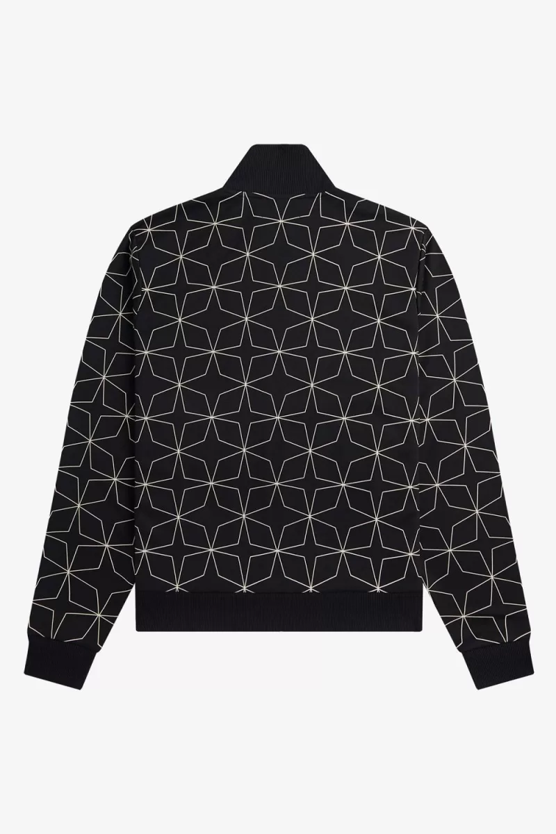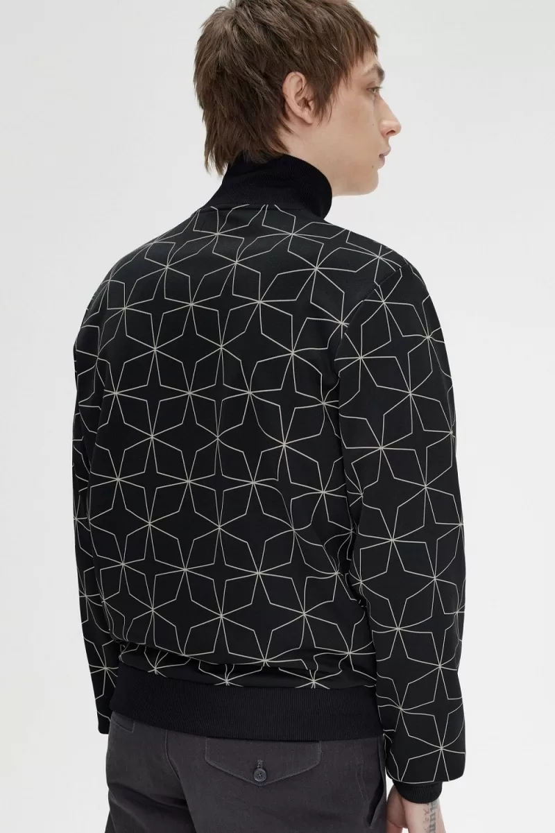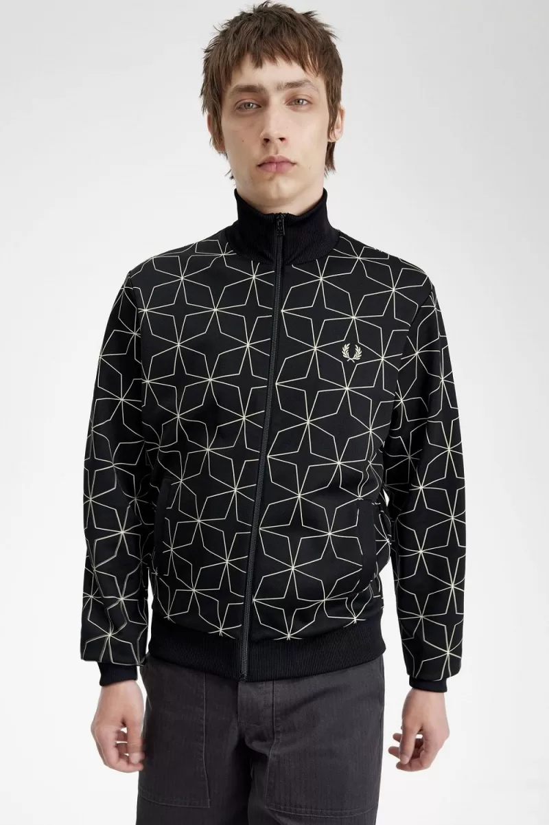 Fred Perry Geometric Print Men’s Track Jackets Black | PQUJO2649