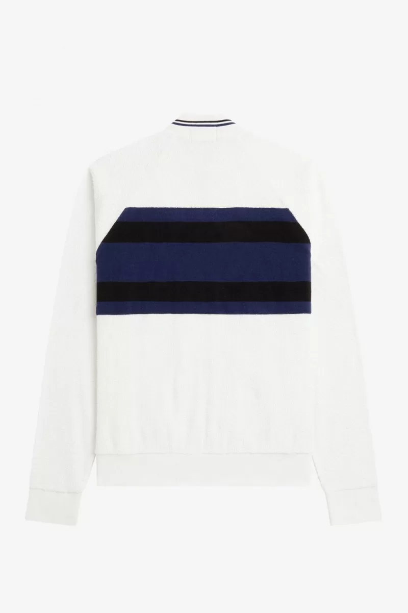 Cotton-blend towelling shell and cotton jersey lining / Regular fit / Made in Portugal / Striped panelling across body and sleeves / Bomber collar shape