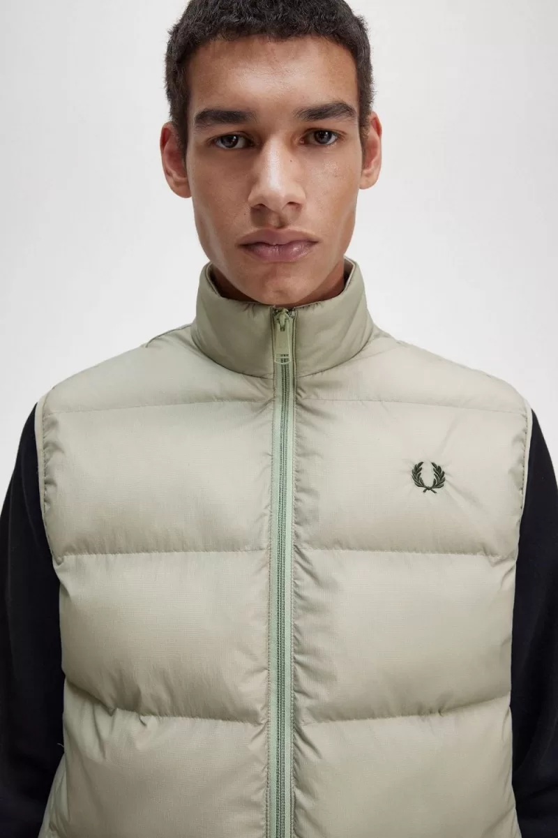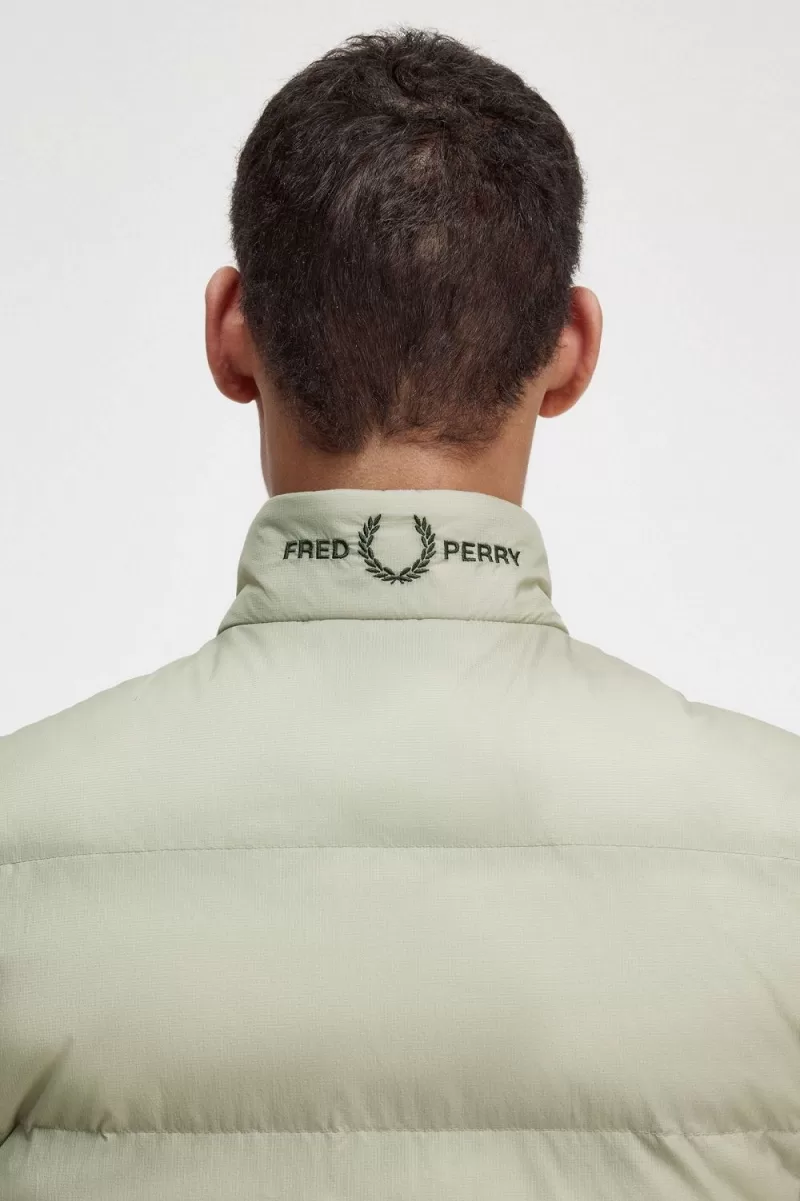 Our smart insulated gilet in partially-recycled nylon ripstop fabric with subtle Fred Perry detailing.