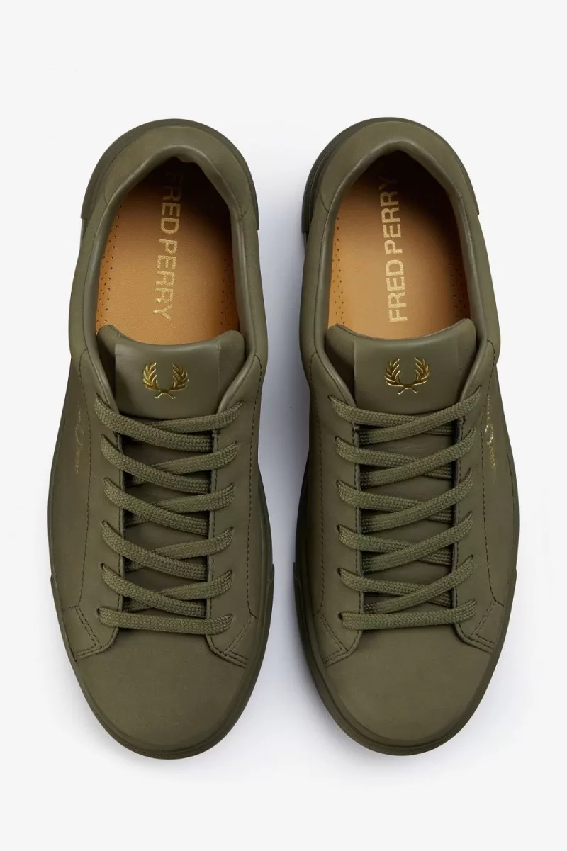 Oiled nubuck upper / Oiled nubuck heel tab / Rubber sole / Gold foil debossed Fred Perry Laurel Wreath text on quarter / Gold foil debossed 16 leaf Laurel on tongue label