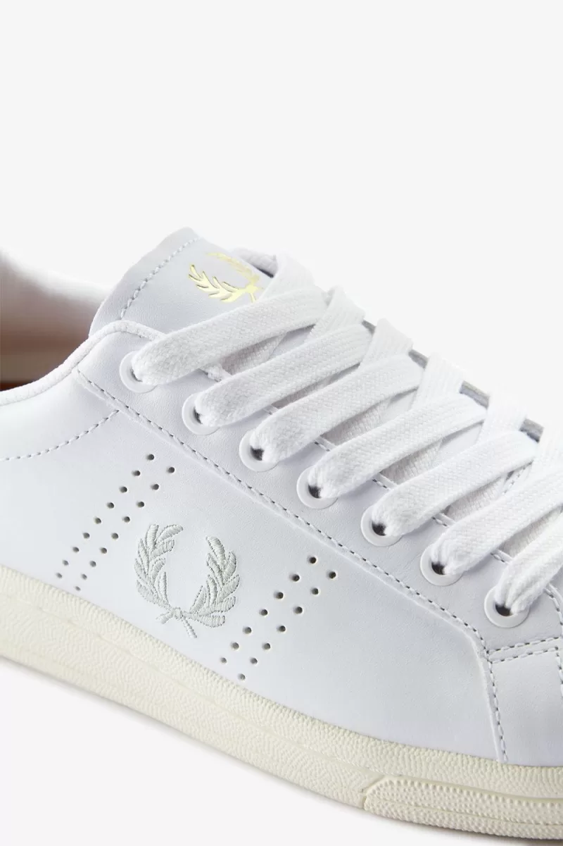 The humble trainer has come a long way in its time. Once a functional piece of sporting kit, now a statement piece, an accessory, an expression of identity.The B721 leather stays true to sports detailing, but enjoys some elevation with Fred Perry’s sign off on the sole, and the famous Laurel Wreath expressed in print, gold foil, and deboss. The tennis shoe of champions.
