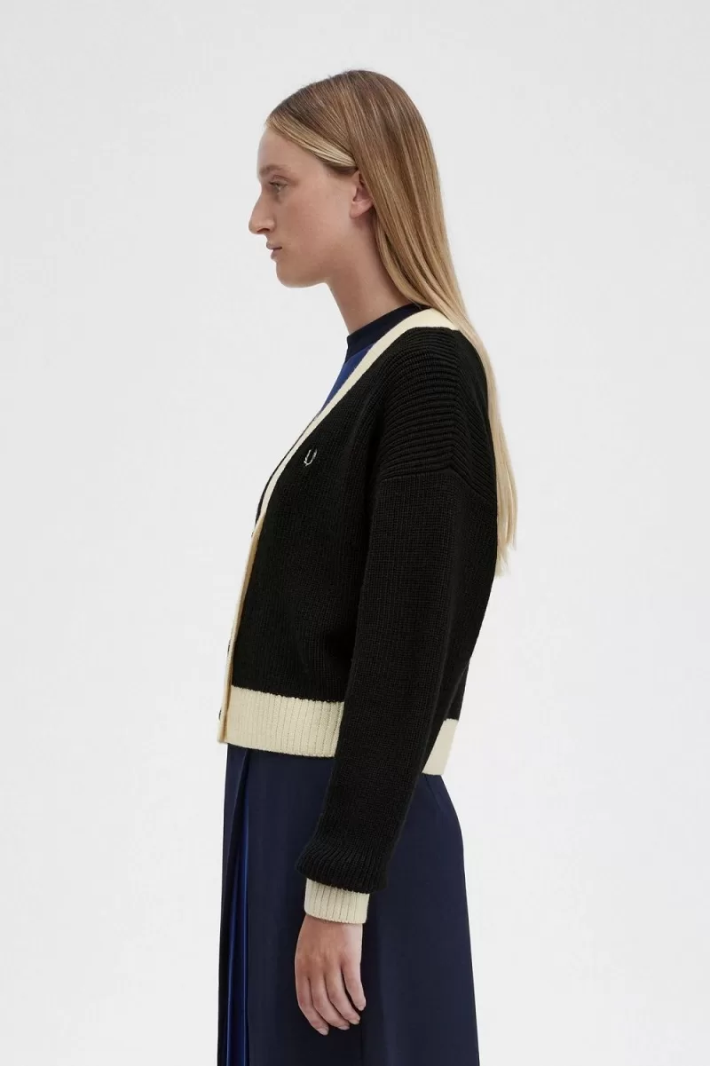 Fred Perry Button-Through Women’s Cardigan Black | BRZFQ5390