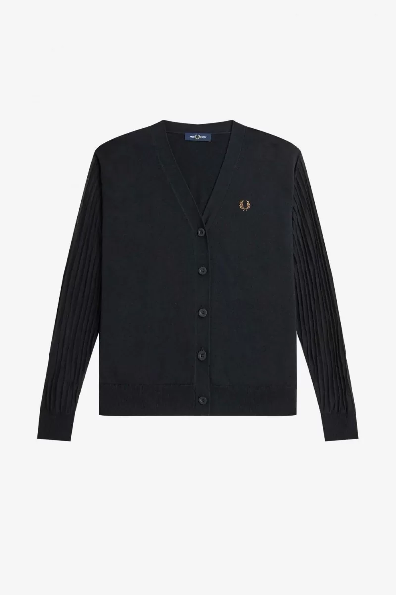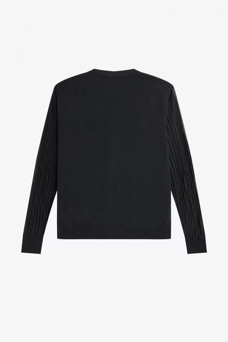 Our sheer sleeve cardigan with a Merino wool fine knit body.