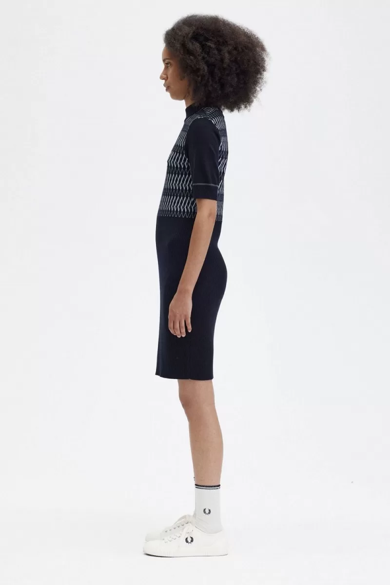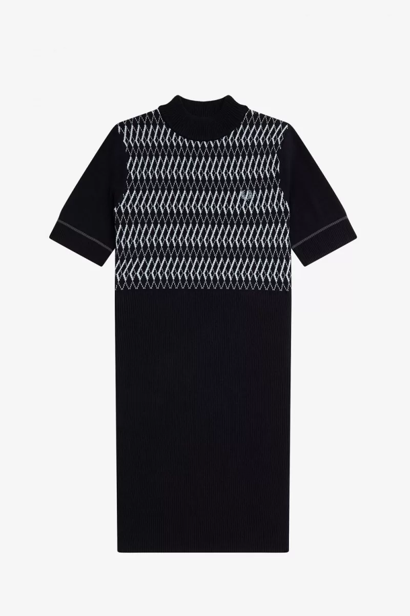 Inspired by the striking knit patterns of the 60s, and bridging the gap between casual and not-so-casual, our jacquard knitted dress with Merino wool is sharp, noticeable, and always Fred Perry.