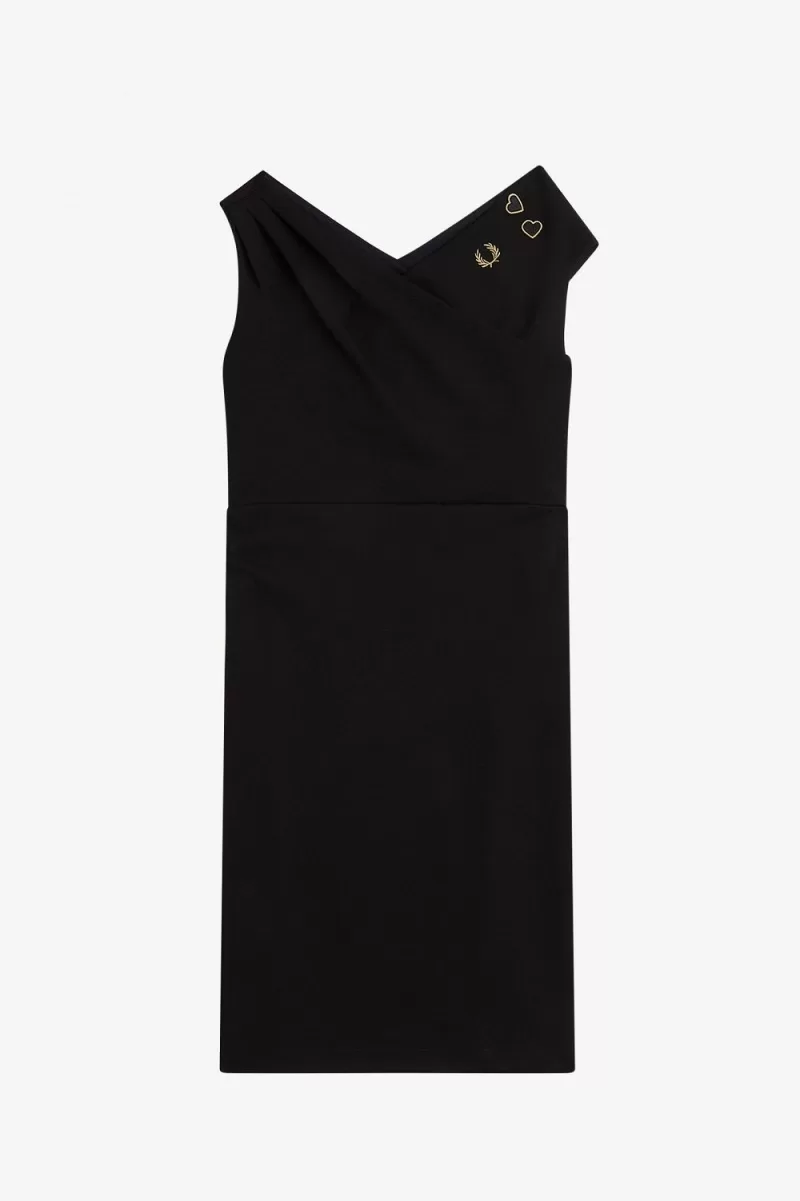 Fred Perry Off-The-Shoulder Women’s Dress Black | NWFPC6309