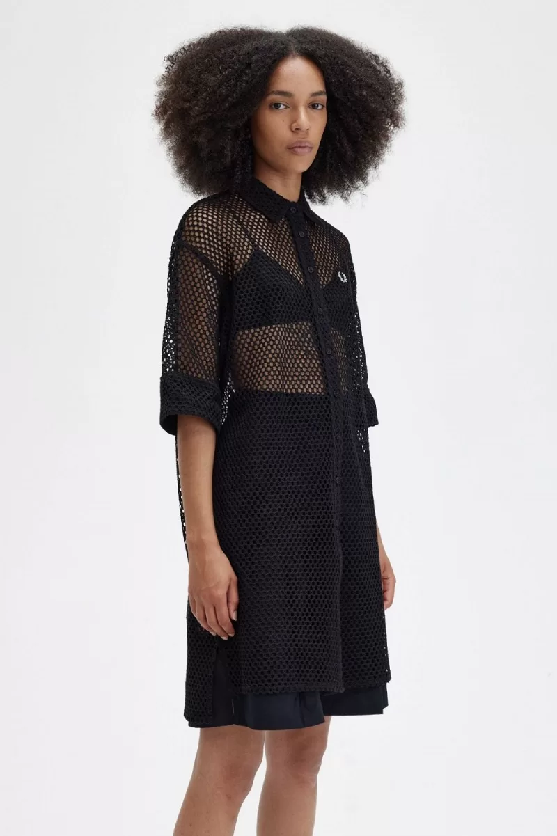 Home Fred Perry Women Fred Perry Women Clothing Fred Perry Women Clothing Dress Fred Perry Open-Knit Shirt Women’s Dress Black | VZNCE5038