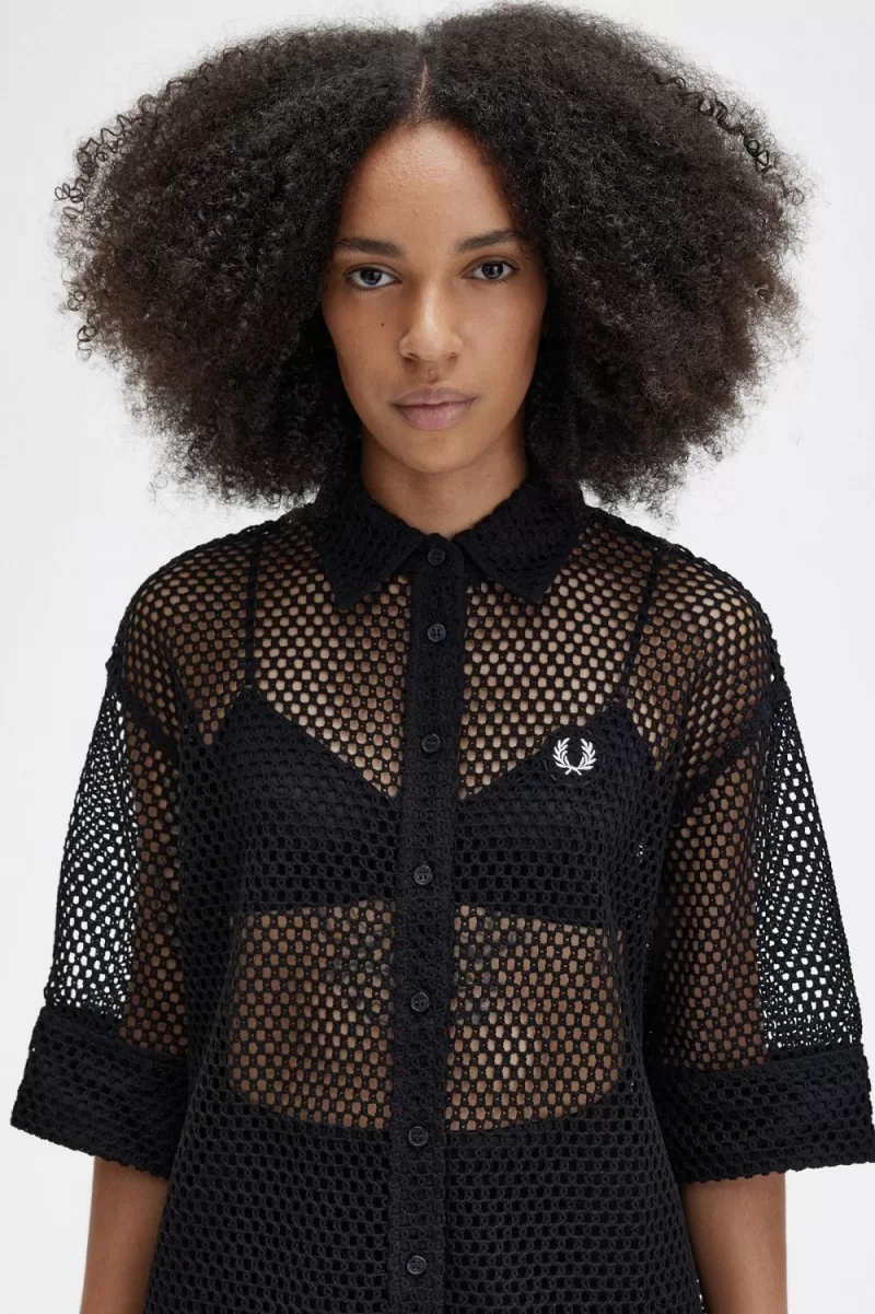 Fred Perry Open-Knit Shirt Women’s Dress Black | VZNCE5038