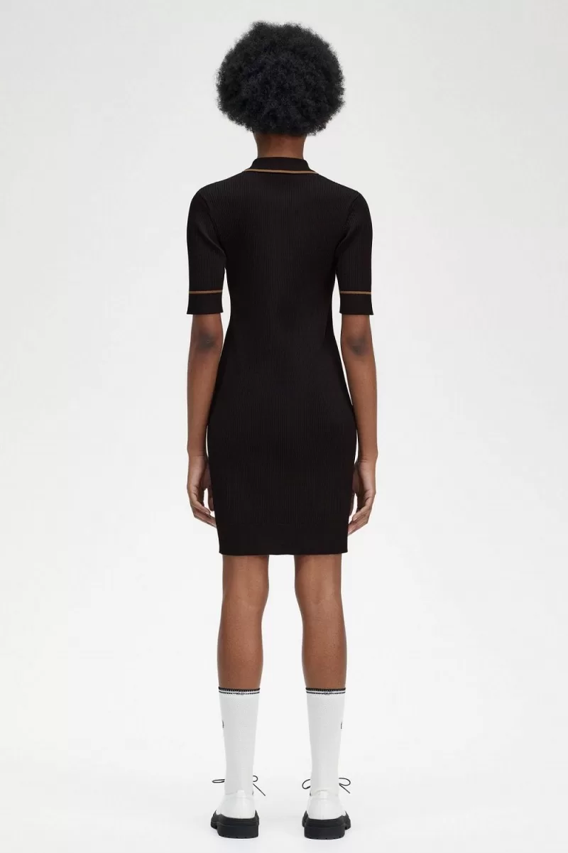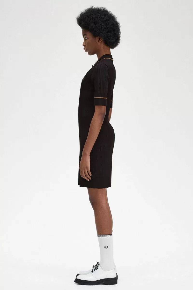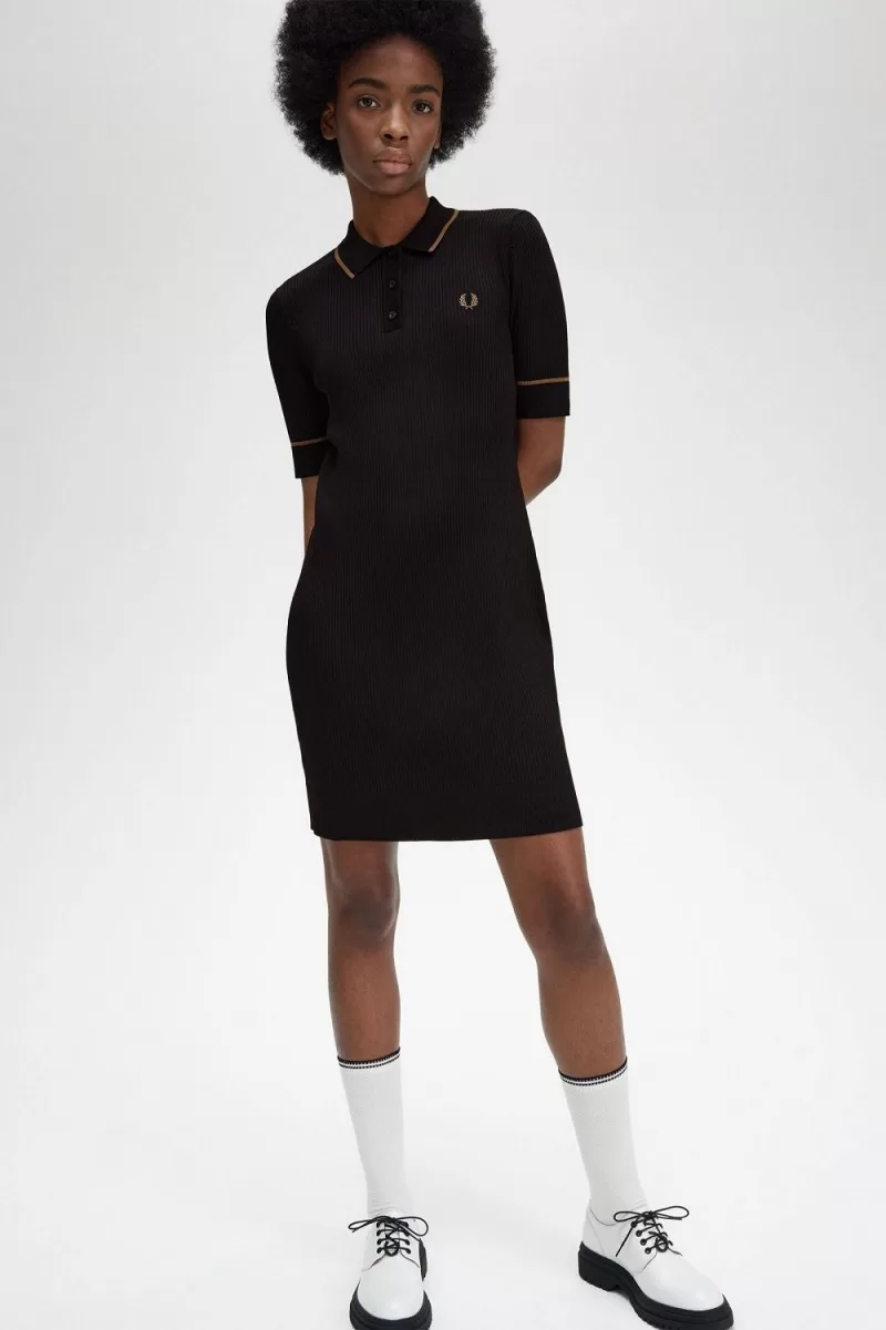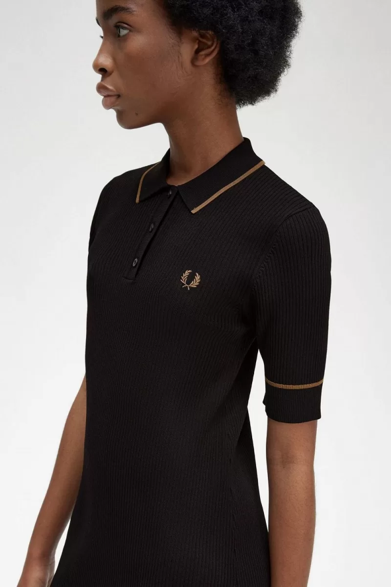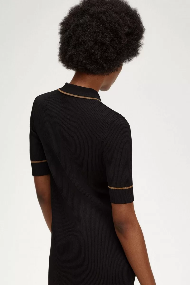 Fred Perry Ribbed Knitted Shirt Women’s Dress Black | GFDRW9486