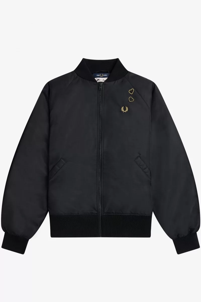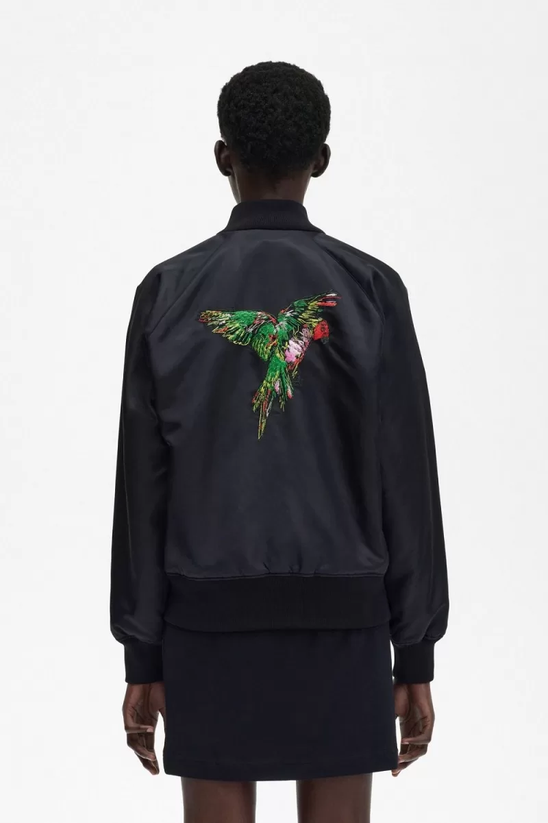 Whether she was at home on the streets of Camden, performing her music on world stages, or styling herself for photoshoots, Amy was synonymous with the Laurel Wreath. Influenced by Amy’s love of colour, our latest collection takes inspiration from the garments designed for her 2011 Brazil tour. Our padded bomber jacket features a large embroidered tropical lorikeet bird to the back body and Amy’s signature love heart embroidery above the Laurel Wreath. We continue to collaborate with the Amy Winehouse Foundation, contributing to the charity with each collection, supporting their vital work for vulnerable young people.