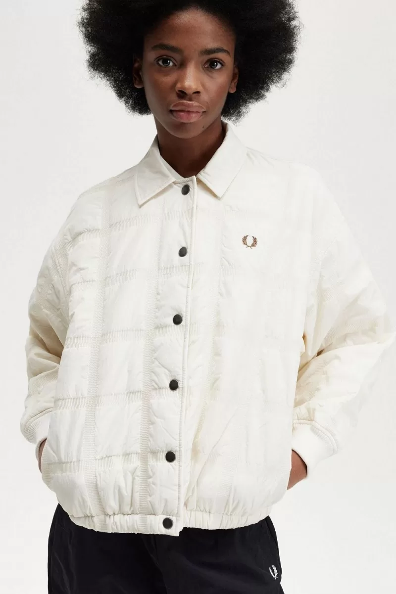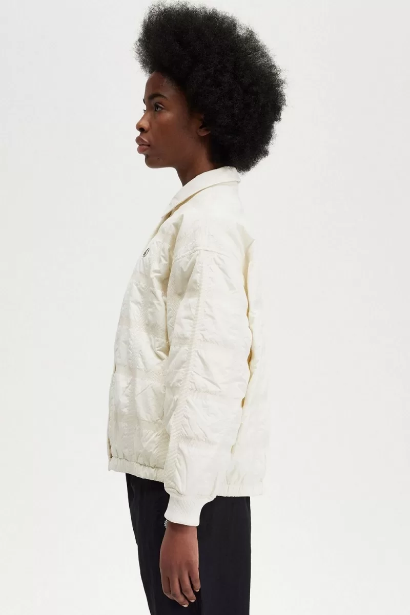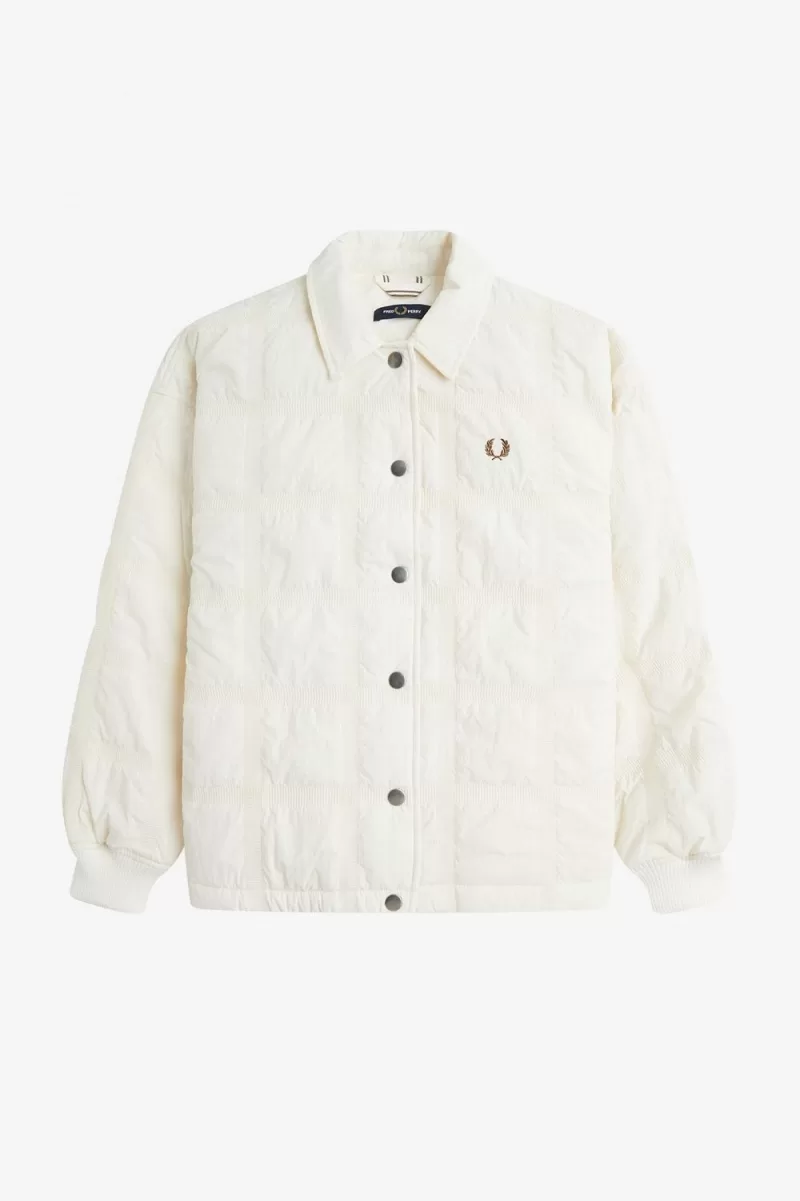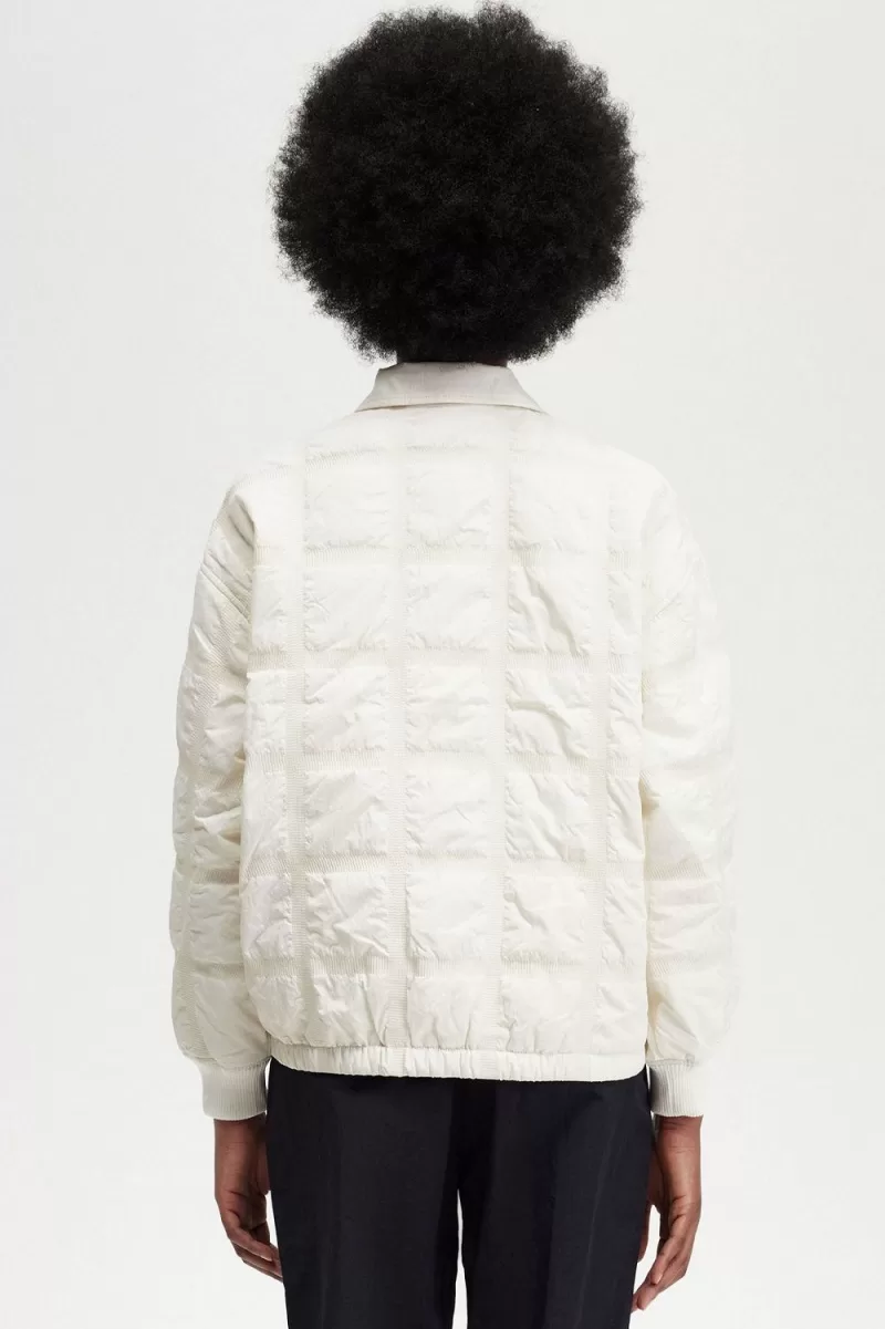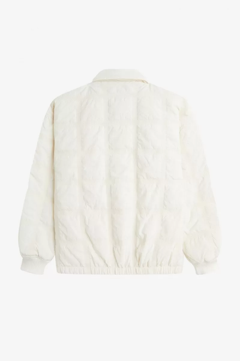 Our grid motif – inspired by the tennis nets, chequerboards, and geometry of sport – meets padded outerwear on our quilted jacket. An easy-on overlayer for cooler days with all the trimmings you’d expect – ribbed cuffs to keep the breeze out, full length snap fastenings, quilt stitch detailing, and the quintessential soft collar.