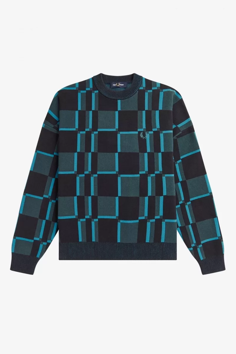 Our bold cotton jumper features a Fred Perry take on the classic chequerboard design.