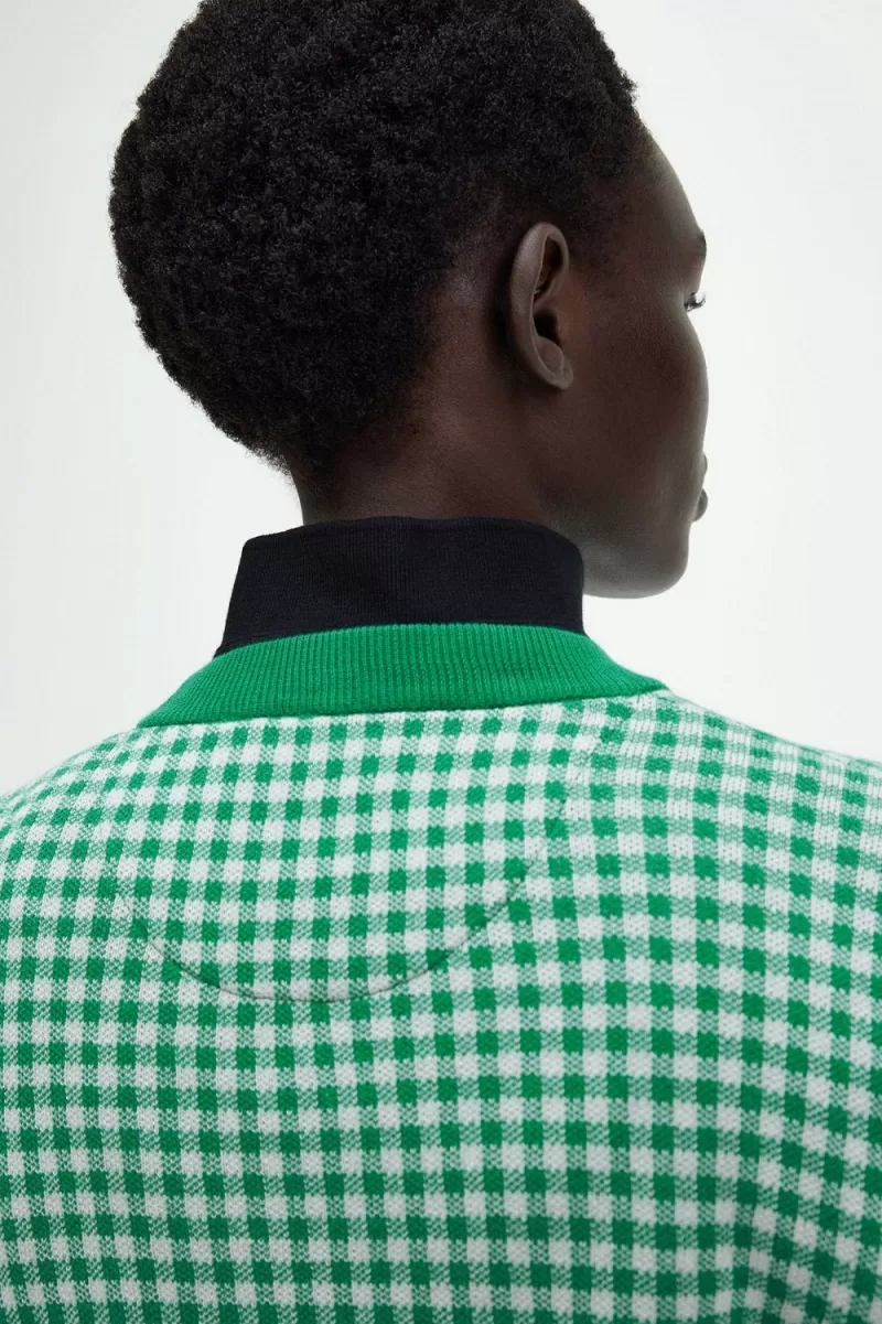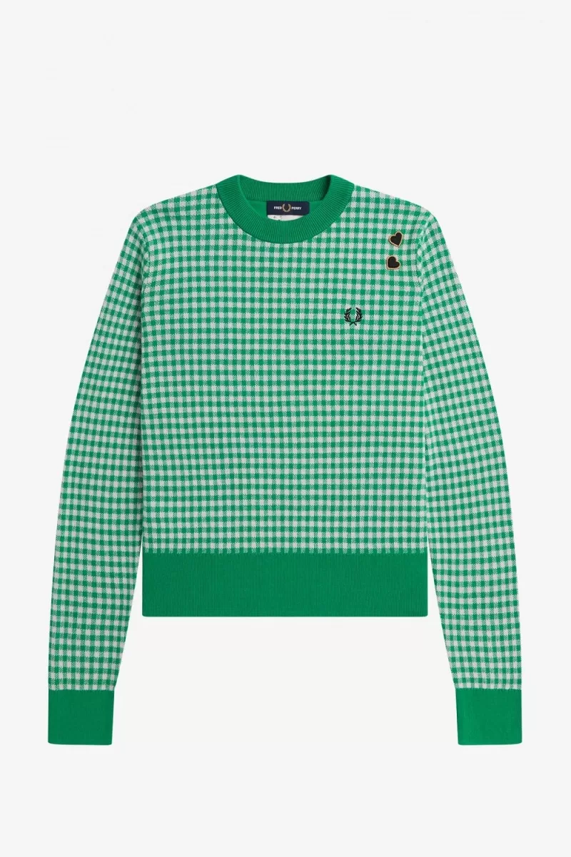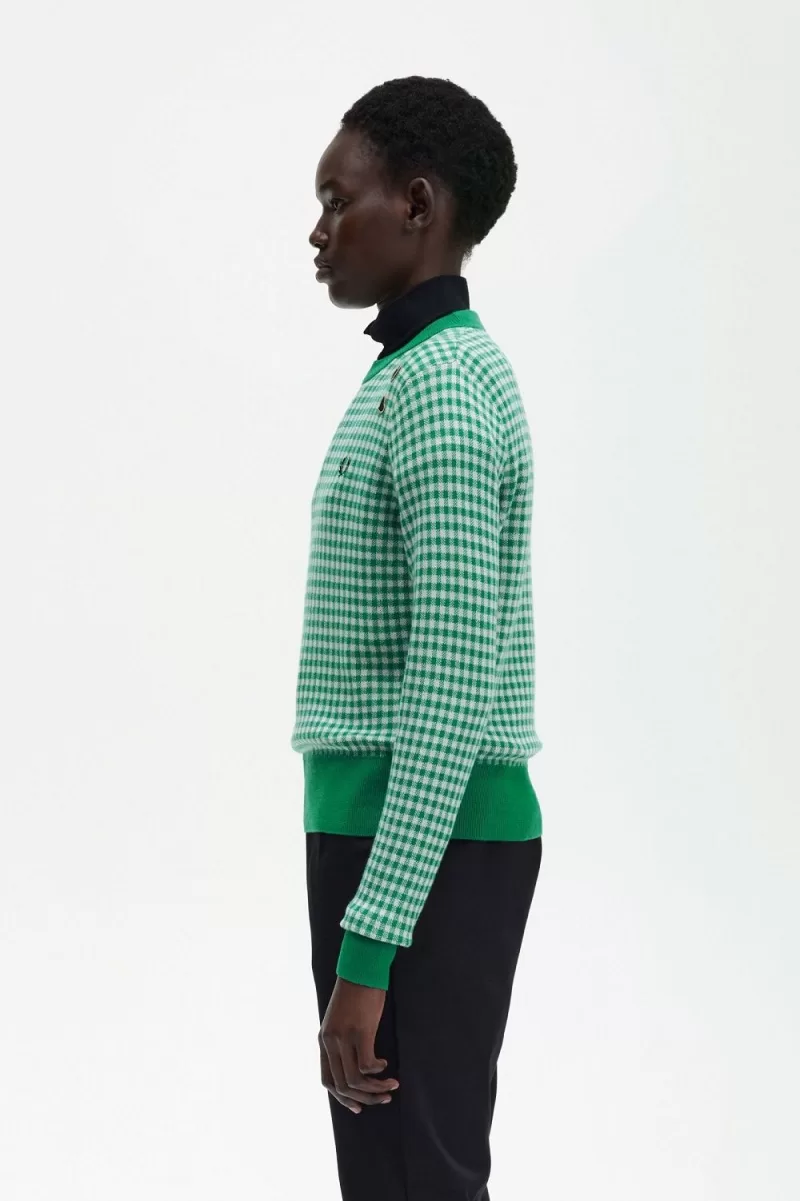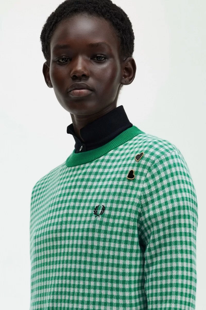 Fred Perry Gingham Women’s Jumper Green | TBKZG5376