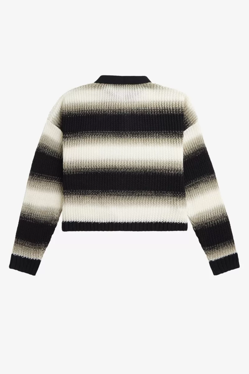 Our open knit shirt with gradient stripe detail and a contrast button placket.