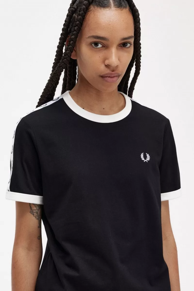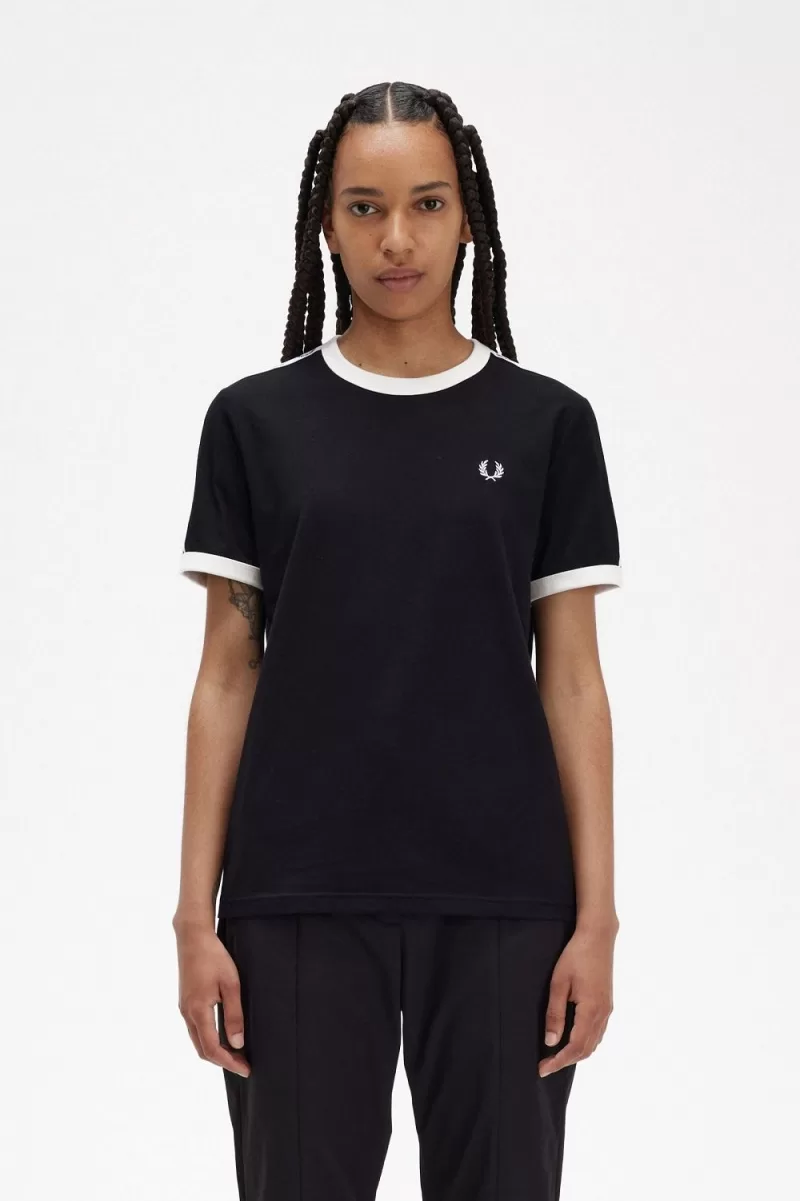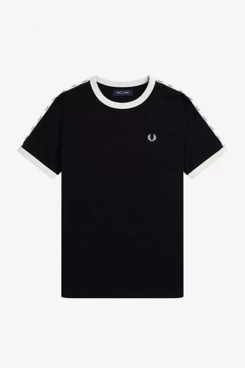 Defined by its contrast rib neck and cuff, our ringer T-shirt is trimmed with our original Laurel Wreath track tape at the sleeve.