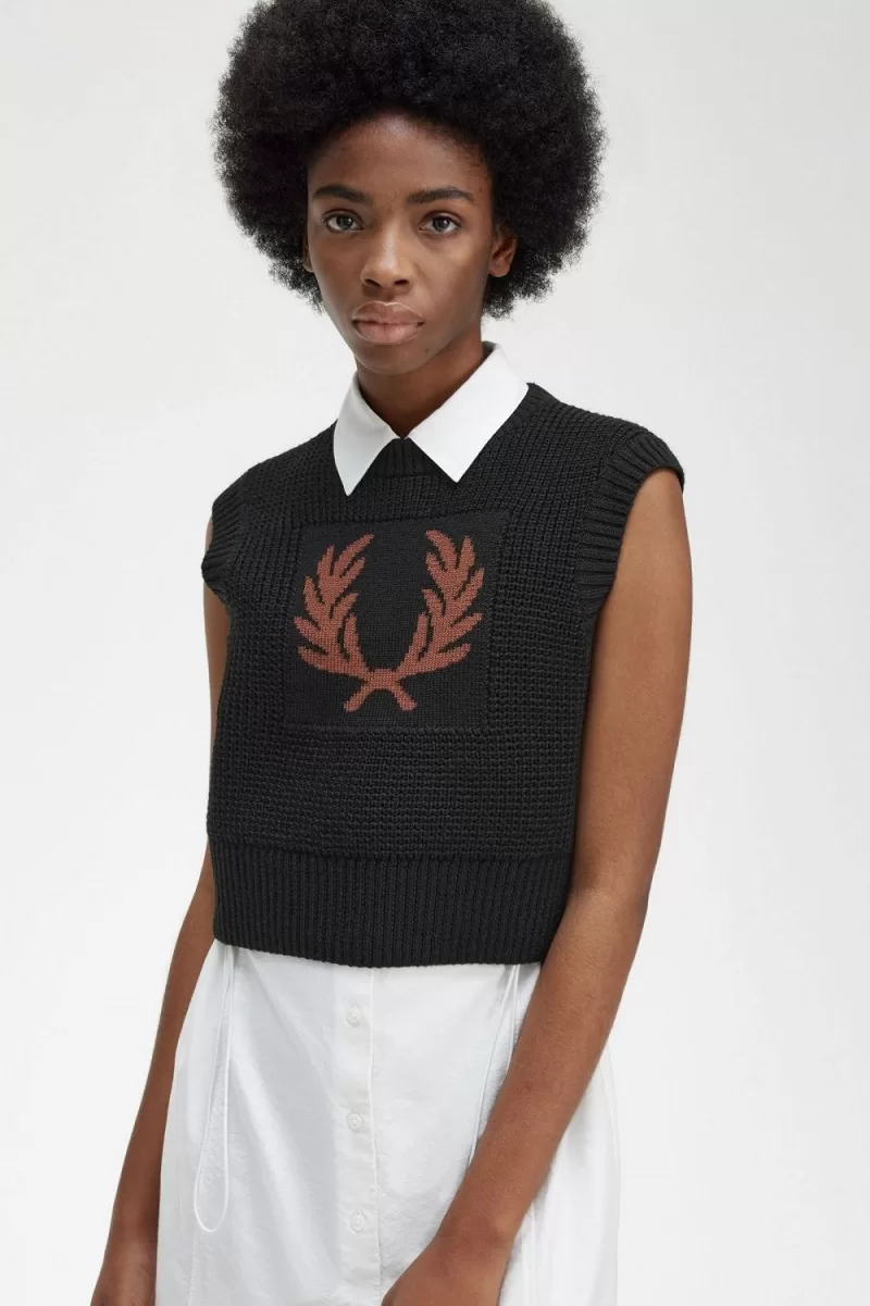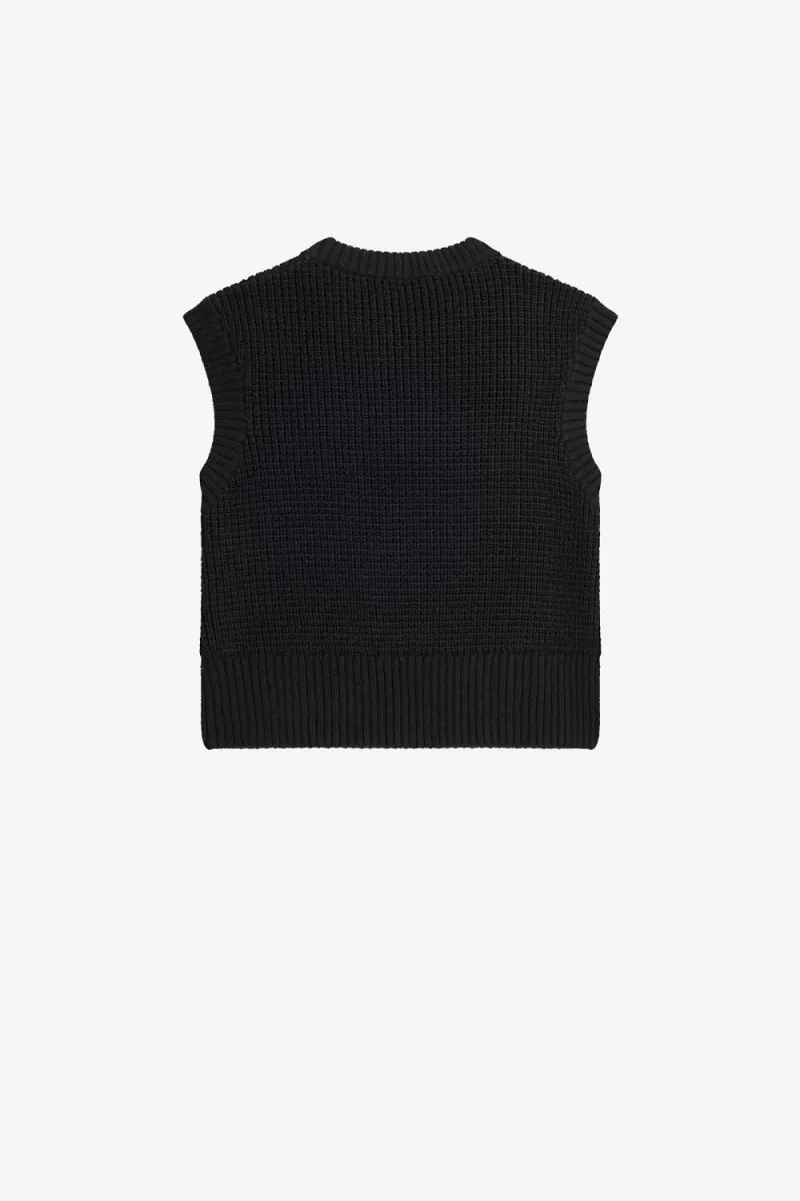 A waffle-knit tank with a knitted jacquard Laurel Wreath intarsia to the centre chest.