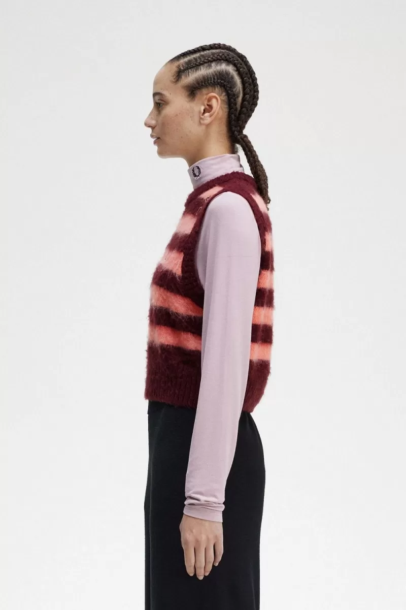 Fred Perry Striped Knitted Women’s Tanks Oxblood | DUTHS0913